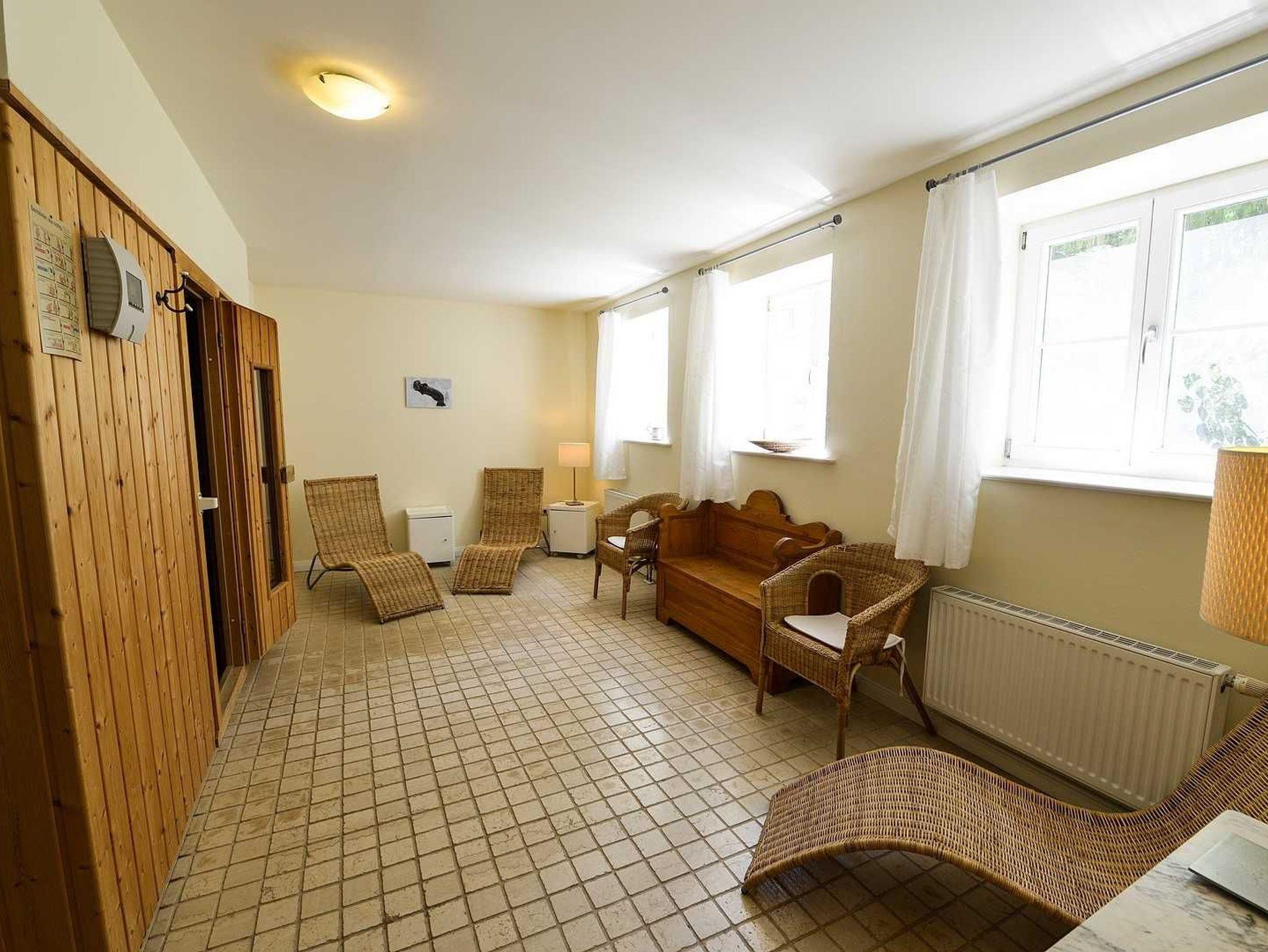Gemütliche Ferienwohnung mit Seeblick und Sauna auf Gut Grubnow Rügen, ideal für erholsame Tage am Wasser.