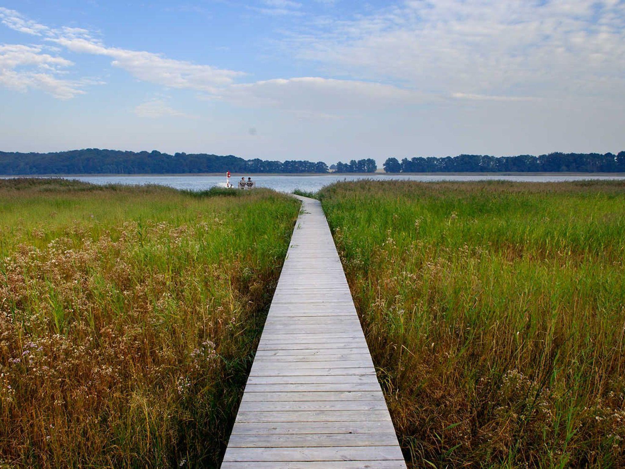 Der große Garten bietet den Ruhesuchenden und den Aktiven gleichermaßen einen perfekten Raum für vielseitige Aktivitäten: Verschiedene abgeschlossene Bereiche mit Liegestühlen und Tischen, eine große Aussichtsterrasse am Schilfgürtel, der Badesteg, der Grillbereich sowie eine Kinderspielecke mit Sandkiste, zwei Schaukeln und Fußballtoren stehen unseren Gästen zur freien Verfügung.