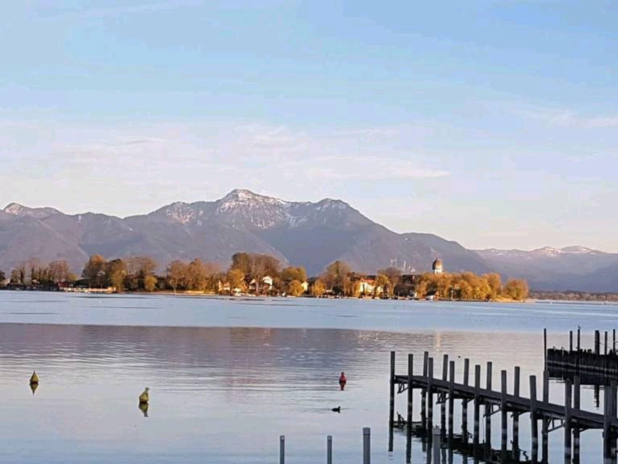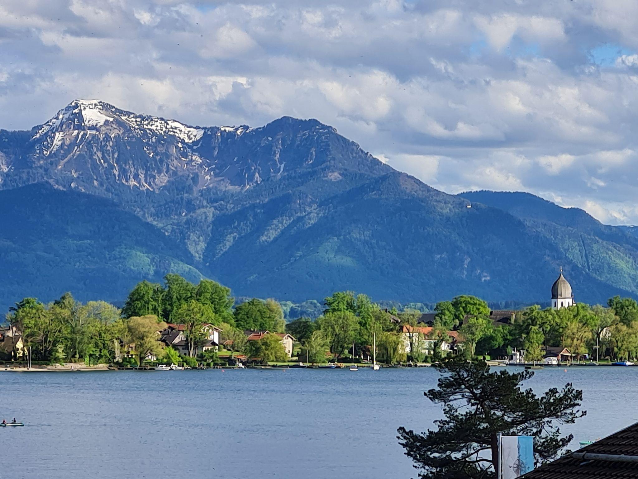 Gemütliches Gästehaus mit Blick auf den See, die Chiemgauer Berge und Inseln. 100 Meter zum See und zur Schiffsanlegestelle. Eigener Badeplatz und Liegewiese mit Bootsverleih (Elektro- Tret- Ruderboote) für Hausgäste ermäßigte Preise. Parkplatz am Haus, Fahrradgarage; Garten am Haus; Kinderbett und Hochstuhl, kleiner Kinderspielplatz.