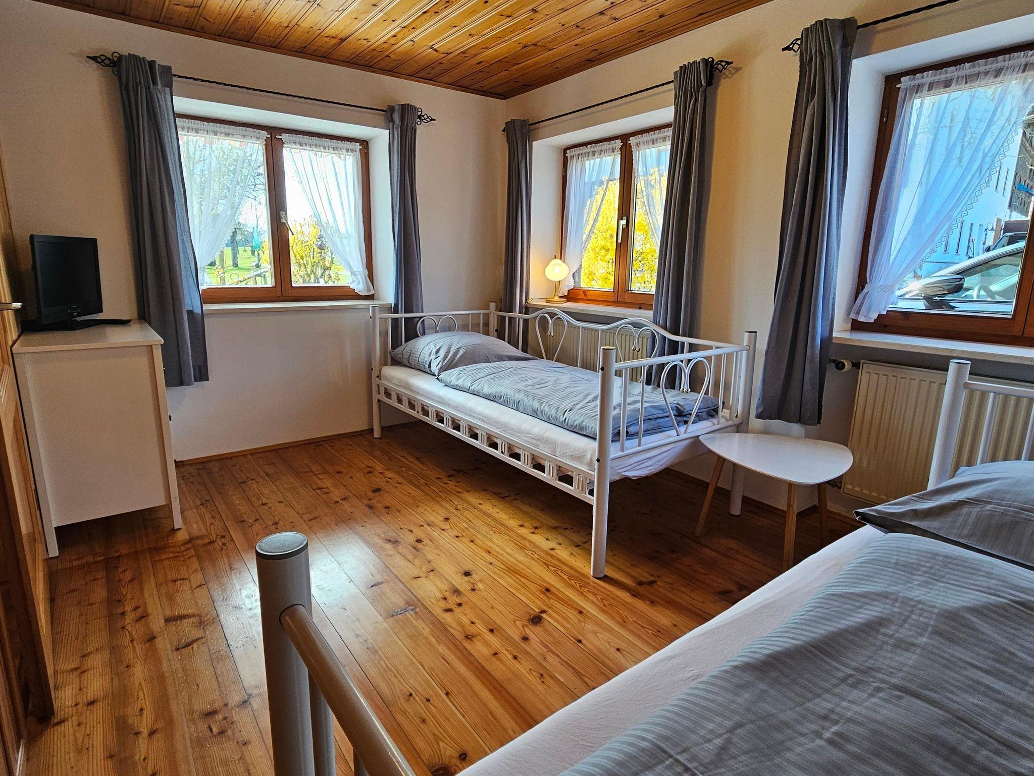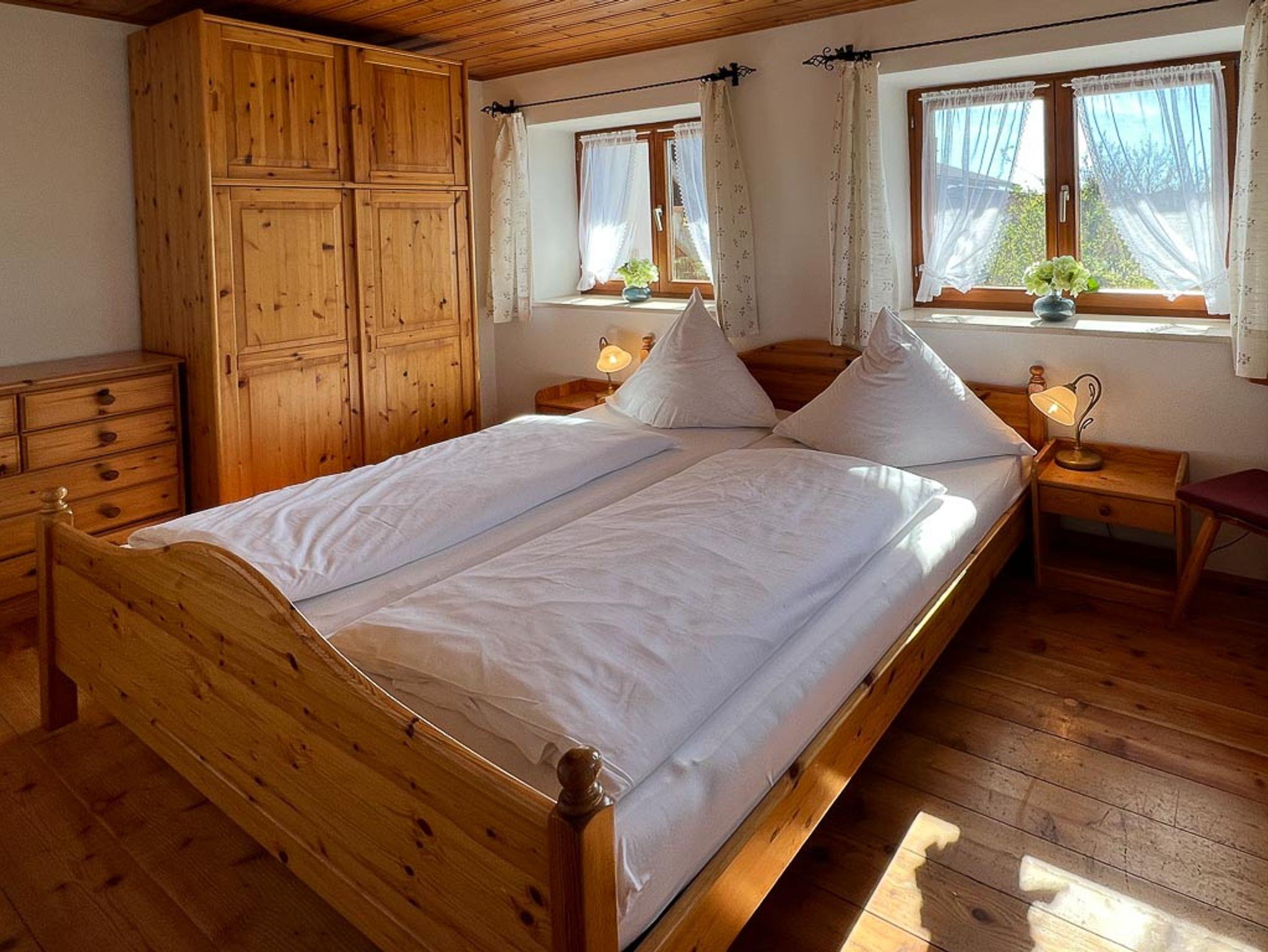 Herzlich Willkommen auf dem Loisenhof. In wunderbarer freier Lage, liegt unser im nebenerwerb bewirtschafteter Hof mit Kälbern. Genießen Sie die ruhige Lage und den herrlichen Bergblick. Eine hauseigene Minigolfanlage, im sehr großen Garten mit Trampolin, Schaukel, Rutsche, Liegen, Grill und Sitzmöglichkeiten stehen unseren Gästen genauso zur Verfügung wie eine Tischtennisplatte, unsere E-Ladesäulen und ein Ladeschrank für die Akkus der E-Bikes. Zum schönen Chiemsee-Strandbad sind es 700m. Viele Rad- und Wanderwege führen Sie direkt ab Hof durch eine sehr schöne Landschaft. Drei sehr gut ausgestattete Ferienwohnung im Haupthaus mit großem möblierten Ost- bzw Süd-Ost-Balkon. Alle drei FeWo`s verfügen über 2 getrennte Schlafzimmer, Küche mit Essbereich, Spülmaschine, Bad mit Dusche/WC, Föhn, Sat-TV. Die Fewo`s verfügen außerdem über einen geräumigen Eingangsbereich und die FeWo Sonntagshorn außerdem noch über ein kl. Wohnzimmer. Die Ferienwohnung Hochfelln verfügt über einen großen Wohnraum mit Küche, Essbereich und Couch. Im Nebenhaus sind zwei Ferienwohnungen. Die gut ausgestattete FeWo Steinplatte im 1. OG mit einem großen möblierten Süd-Ost-Balkon verfügt über ein Schlafzimmer mit Doppelbett, ein Bad mit Dusche/WC eine Küche mit Spülmaschine und einen Wohnraum mit Essbereich, Couch und Sat-TV. Die FeWo Hochgern im EG mit sehr großer möblierter Terrasse verfügt über ein Schlafzimmer, mit Doppelbett, einen kombinierten Wohn-Schlafraum mit zwei Tagesbetten und TV. Ein Bad mit Dusche/WC und eine Küche mit Spülmaschine und Essbereich.