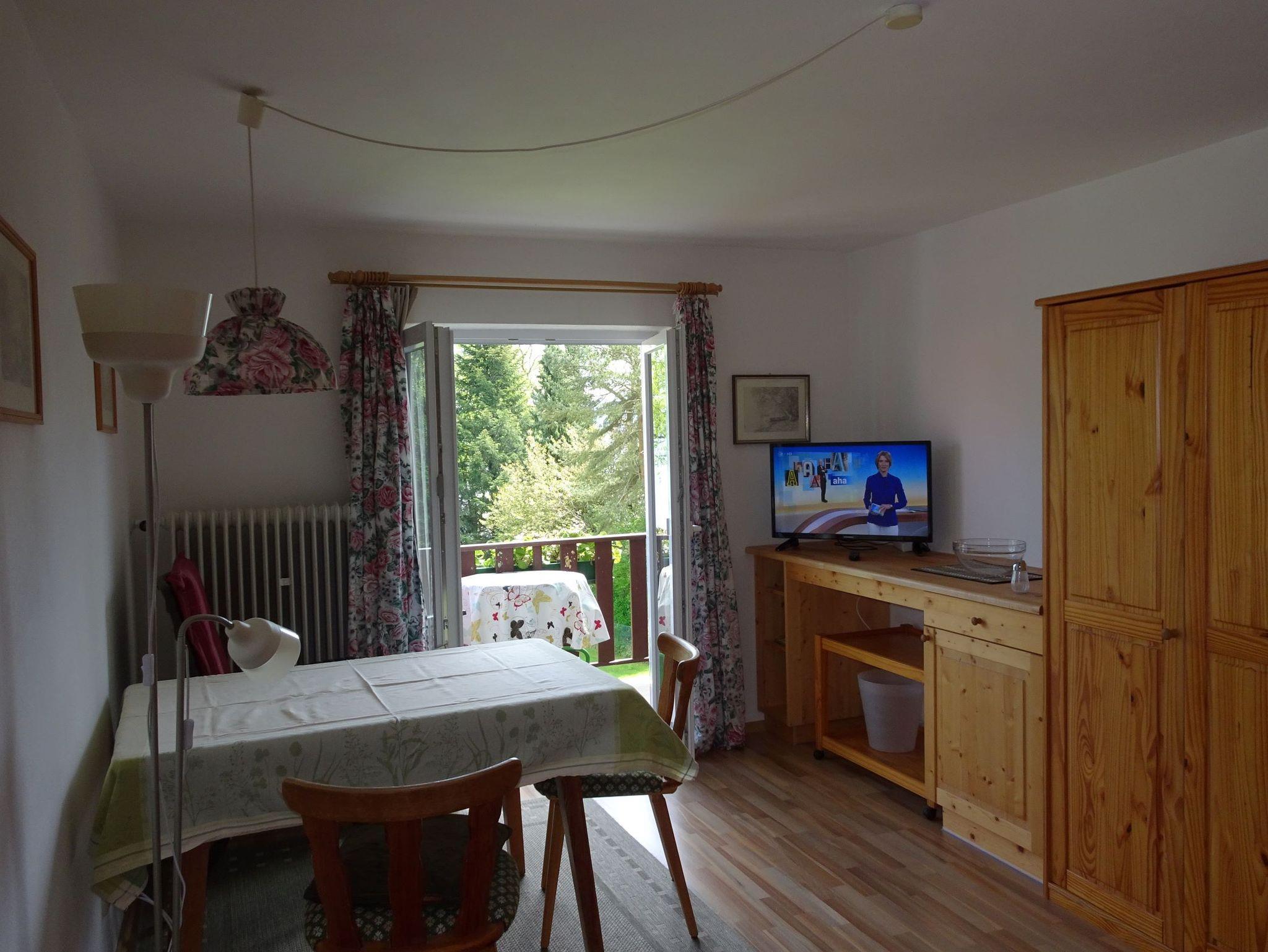 Das 21 qm große Appartement liegt im ersten Stock und verfügt über einen Wohn-Schlafraum mit TV und Radio, eine Kochnische, eine Dusche, ein WC und einen zum Appartement dazugehörigen Balkon inklusive Balkonmöbel mit See- und Bergblick und Sonne bis ca. Mittag. Das Appartement ist ein Nichtraucher-Appartement.