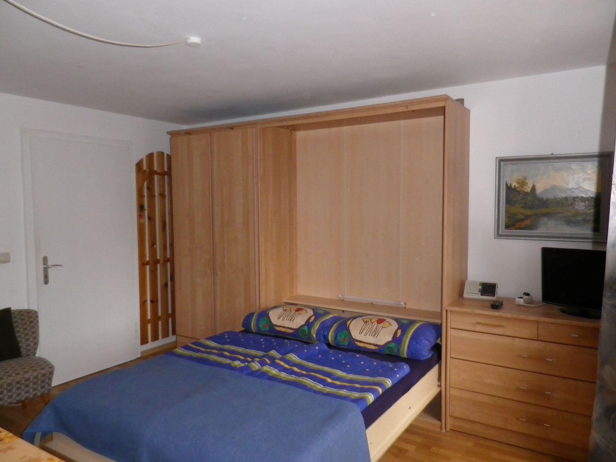 Das 20 qm große Appartement liegt im ersten Stock und verfügt über einen Wohn-/Schlafraum mit einem 140 cm breitem Schrankbett mit fester Liegefläche, Kochnische, Dusche/WC. Ein Balkon inklusive Balkonmöbel mit Sonne ab Mittag steht auch zur Verfügung. Das Appartement ist ein Nichtraucher-Appartement.