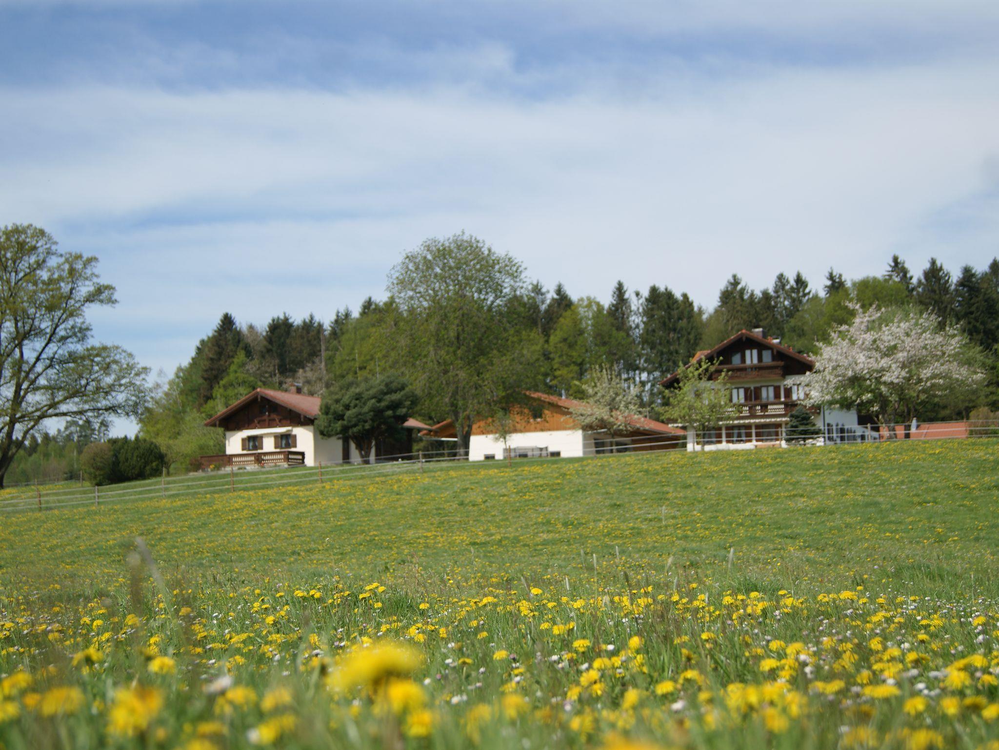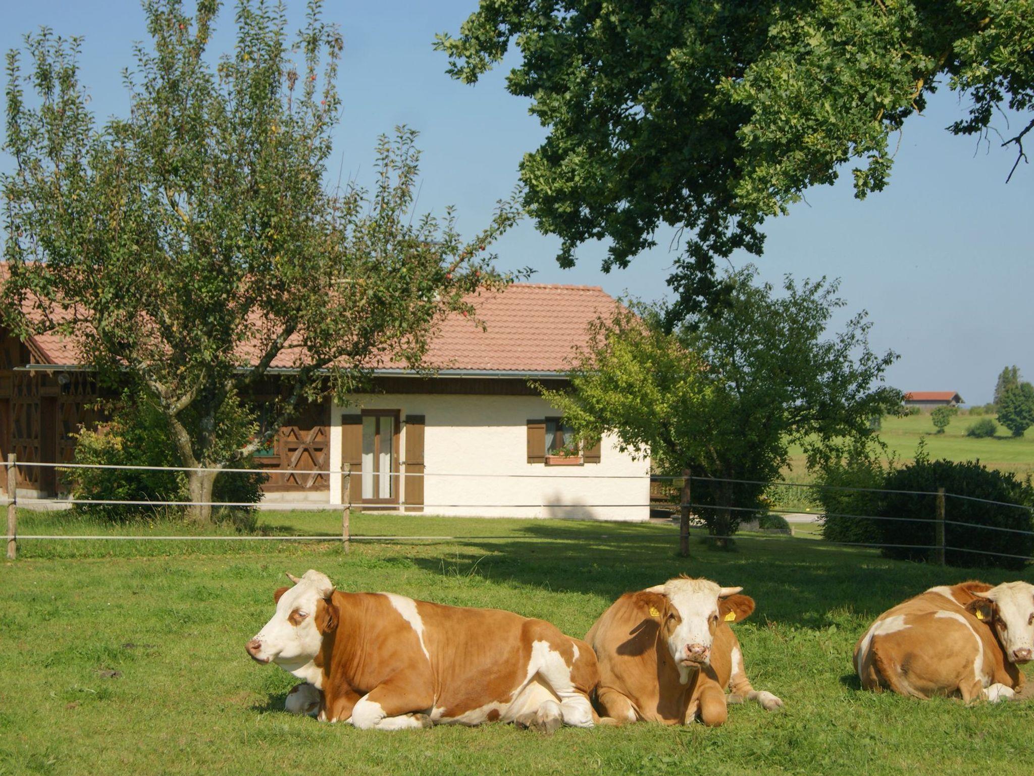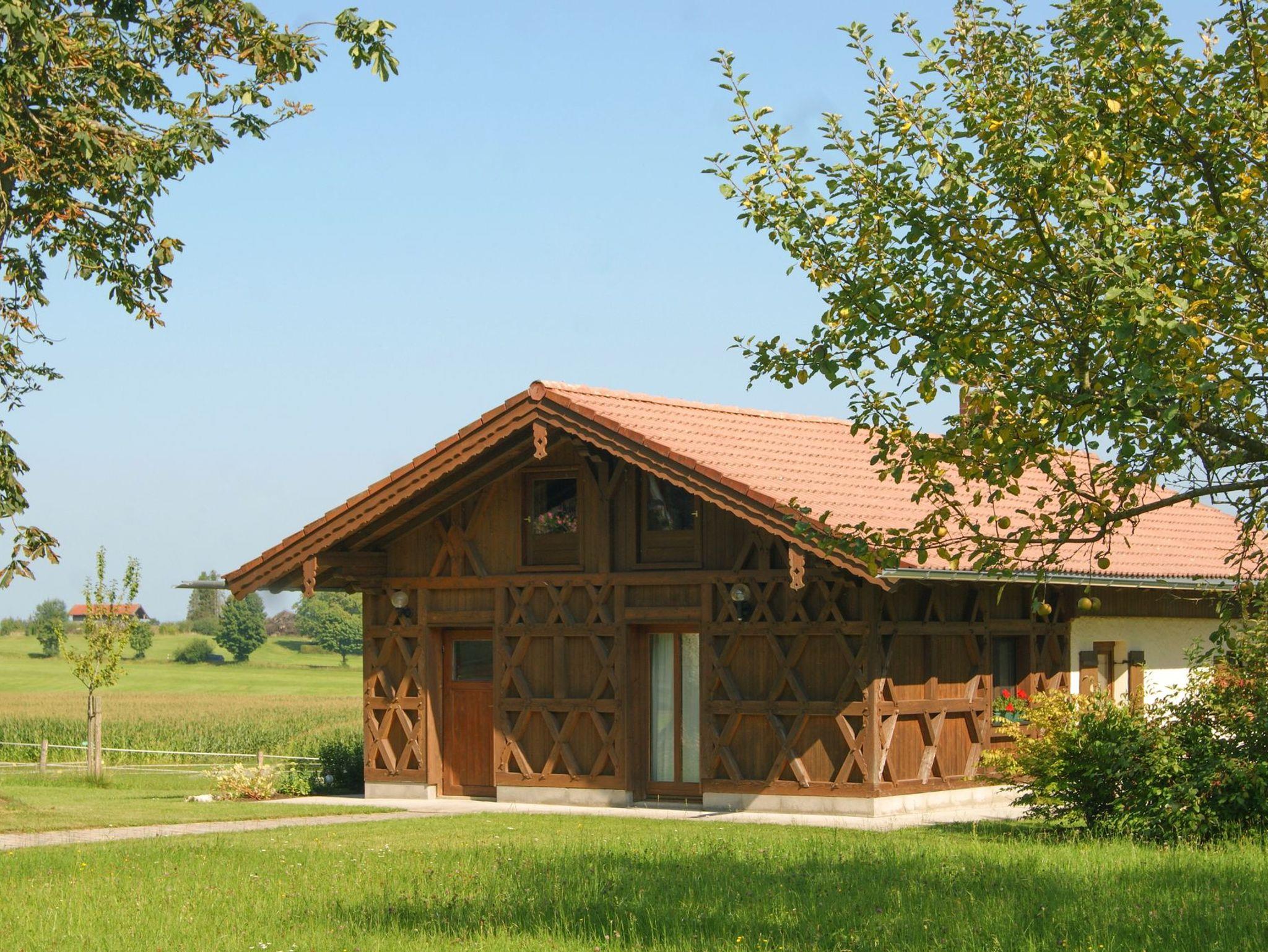 Ferienhäuschen in sehr ruhiger Lage, wie auf einer Alm, Große Terasse, Liegewiese, Grillplatz mit Blick zu den Bergen, Weidetiere um das Ferienhäuschen, in der nähe vom Wald, Rad- und Wanderwege, zu Fuß 10 Min. zum See.