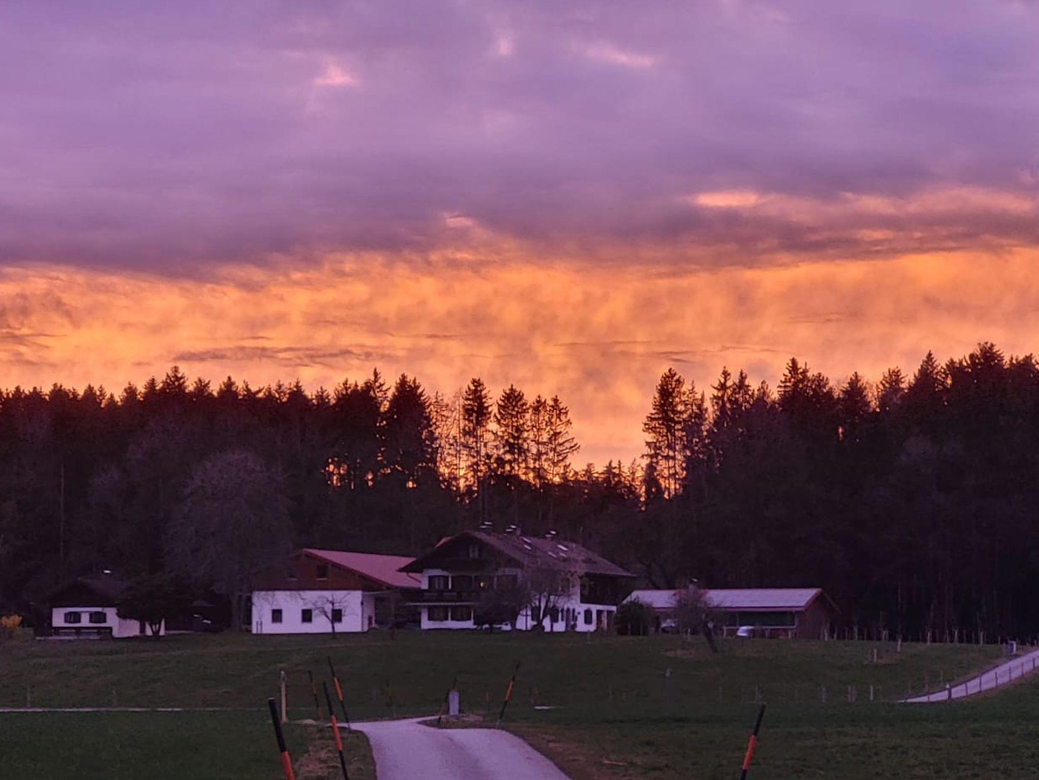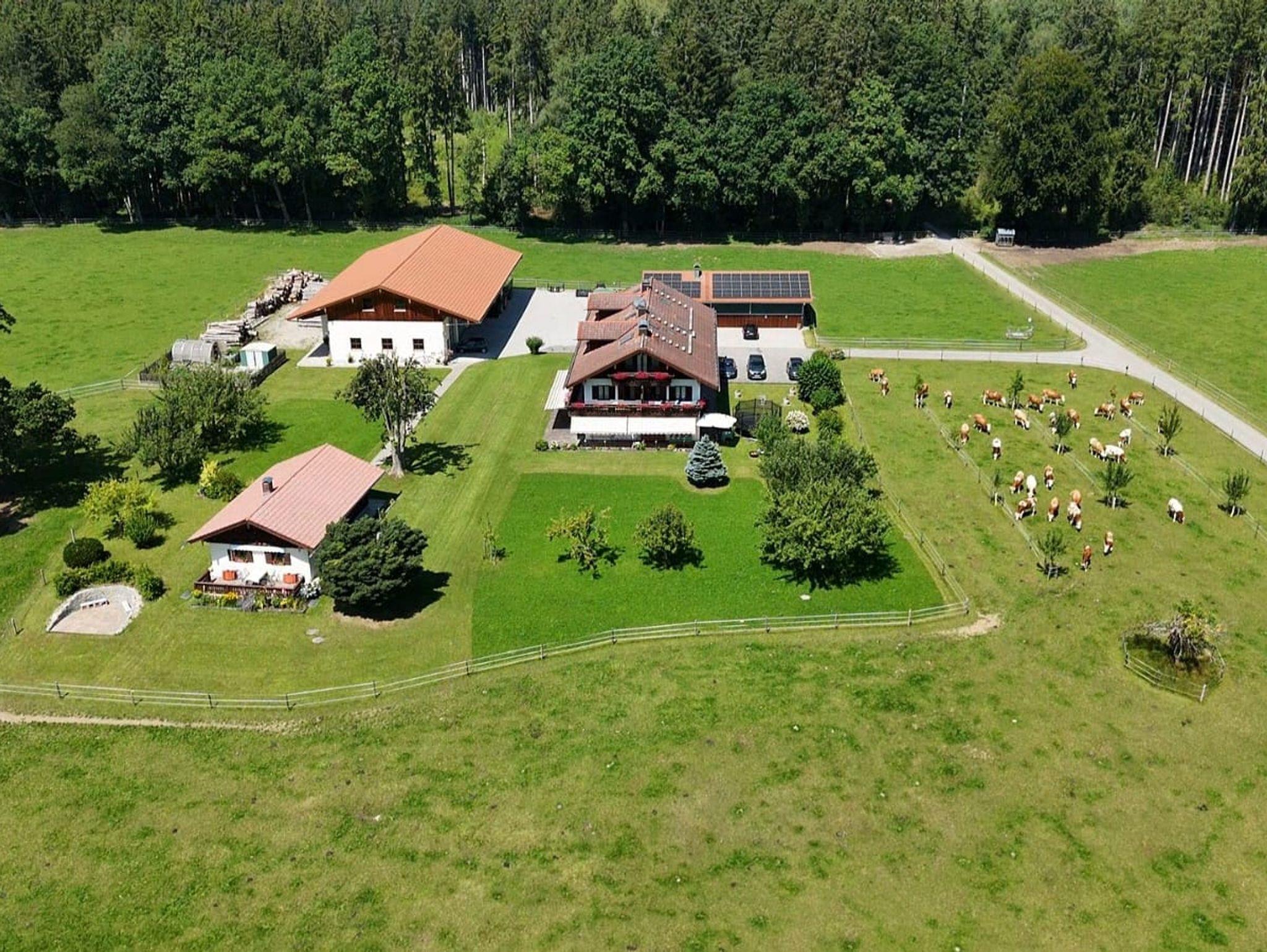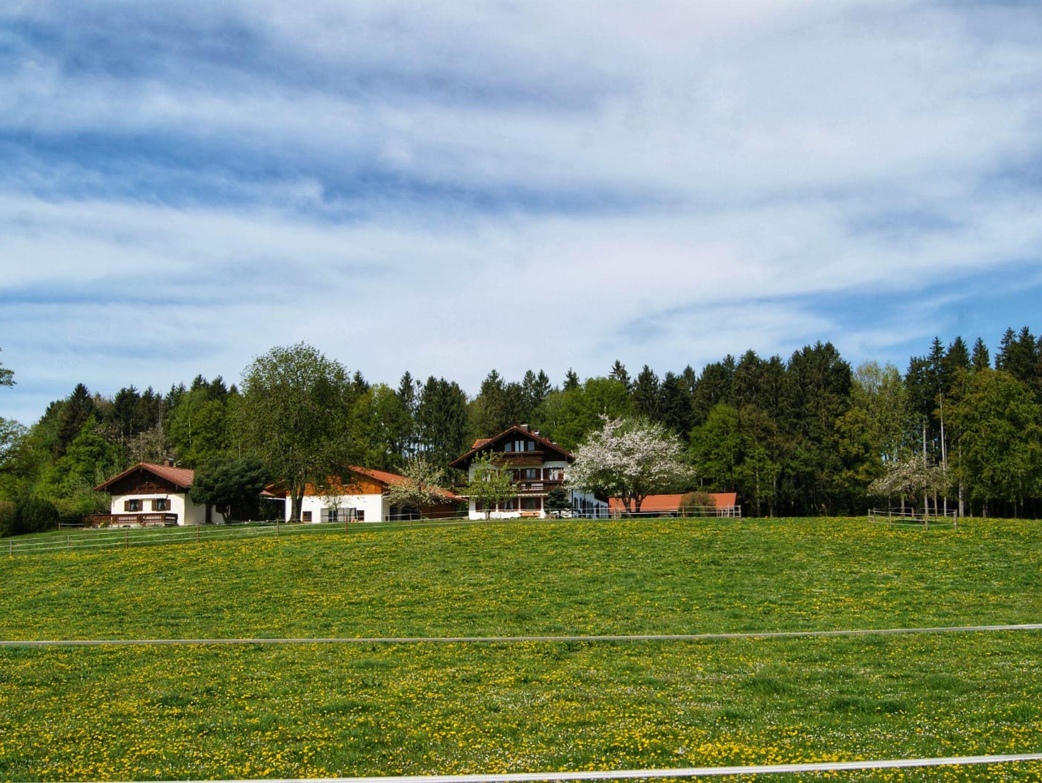 Ferienhäuschen in sehr ruhiger Lage, wie auf einer Alm, Große Terasse, Liegewiese, Grillplatz mit Blick zu den Bergen, Weidetiere um das Ferienhäuschen, in der nähe vom Wald, Rad- und Wanderwege, zu Fuß 10 Min. zum See.