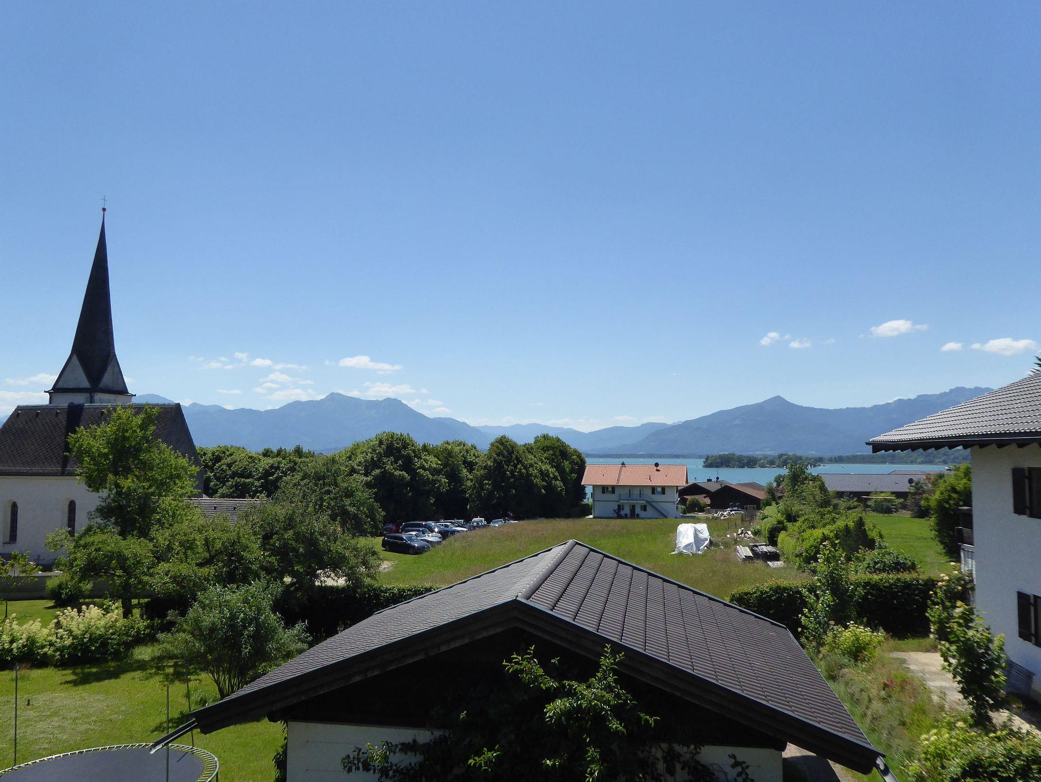 Wir möchten Sie herzlich willkommen heißen in unserer neuwertigen Ferienwohnung in ruhiger, aber zentraler Lage von Gstadt. Die hochwertige und helle Ferienwohnung mit ca. 60 qm befindet sich im 1. Stock mit großem Südbalkon. Von hier aus können Sie in Ruhe den Blick auf die Alpenkette und den Chiemsee genießen. Der große Ess- und Wohnbereich ist mit Couch und TV (39 Zoll) ausgestattet, die Küche mit Kaffemaschine, großer Spülmaschine, Cerankochfeld, Backofen und Mikrowelle, Wasserkocher, Toaster, Kühlschrank mit Tiefkühlfach; im Schlafzimmer befindet sich ein Doppelbett (180 x 200 cm), ein großer Schrank und Verdunklungsvorhänge und im Bad sind DU/WC und Badewanne vorhanden. Auch ein Wäscheständer steht Ihnen zur Verfügung. Eigener Kfz-Stellplatz.