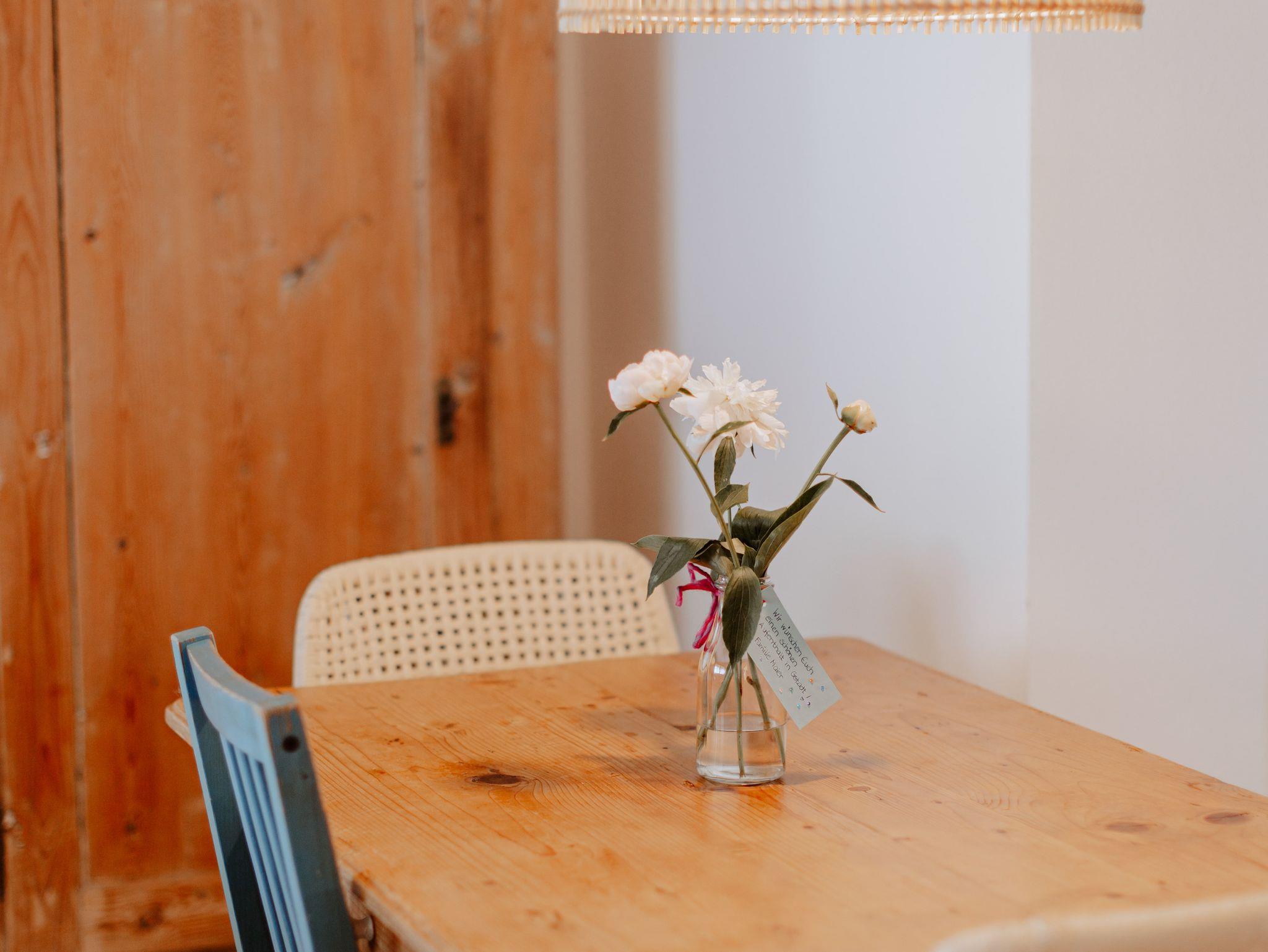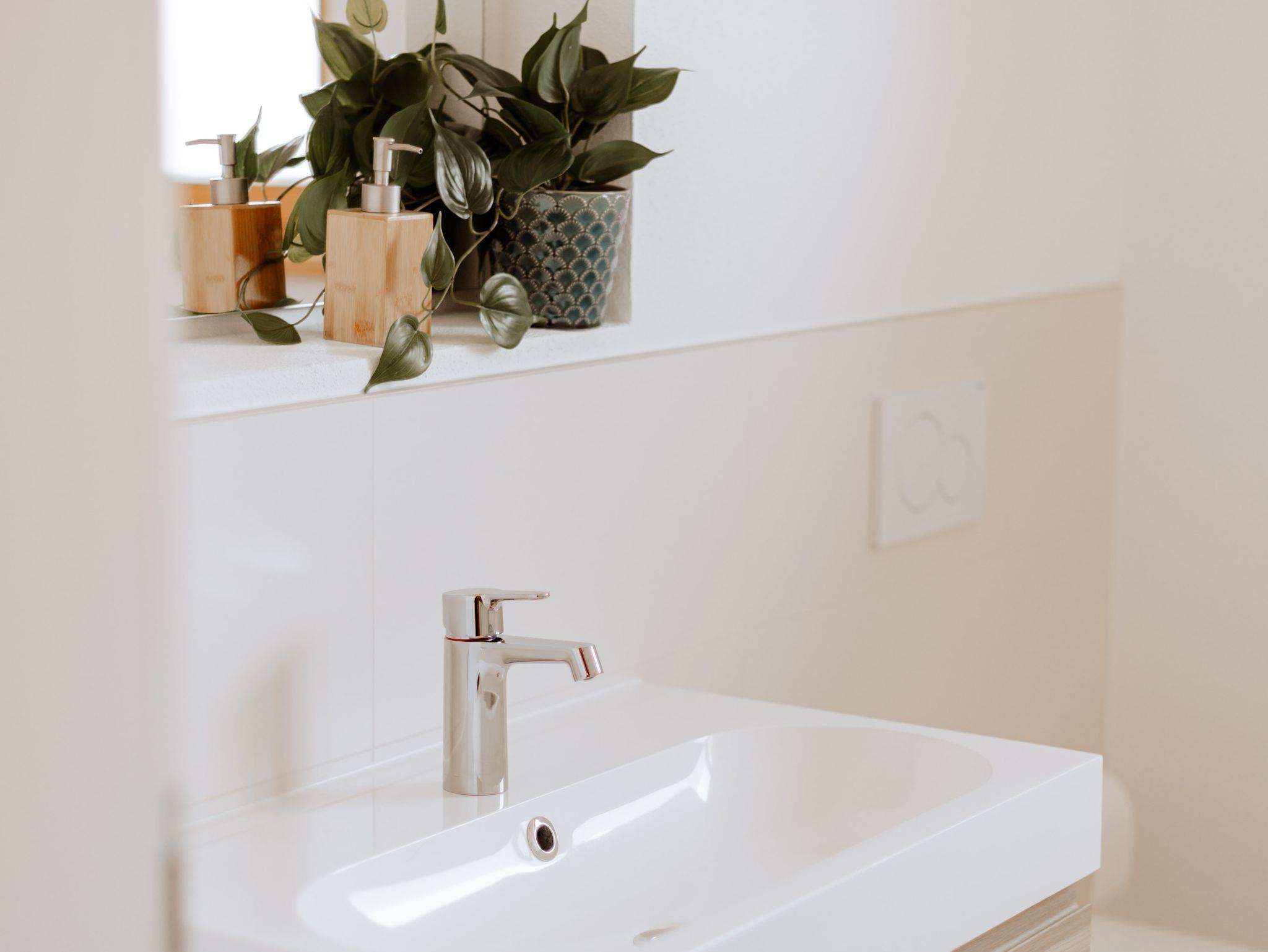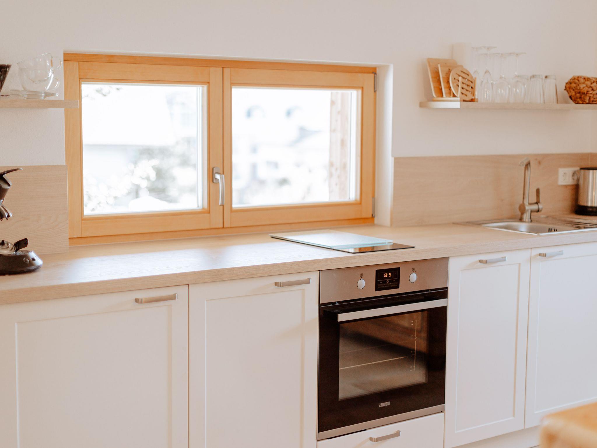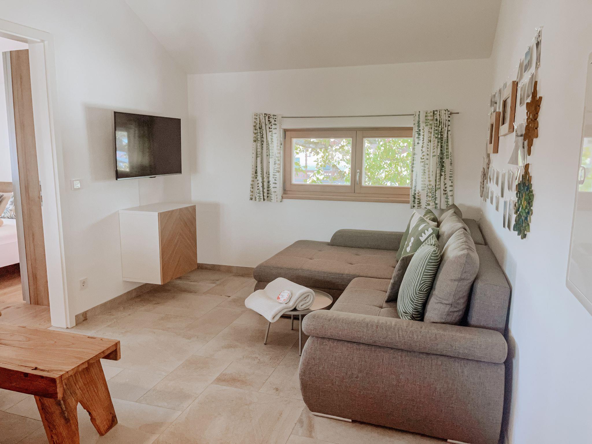 Neubau mit moderner Ausstattung über Außentreppe erreichbar. Separater Eingang. Die Wohnung verfügt über ein Schlafzimmer mit einem Doppelbett mit 180 x 200 cm, ein Bad und eine voll ausgestattete Küche mit Esstisch und einem gemütlichen Bereich mit Couch zum Entspannen. Privatparkplätze, Mitbenutzung der Terrasse im Garten, Obstgarten, WLAN, Fernseher, keine Hunde. Kinder auf Anfrage.