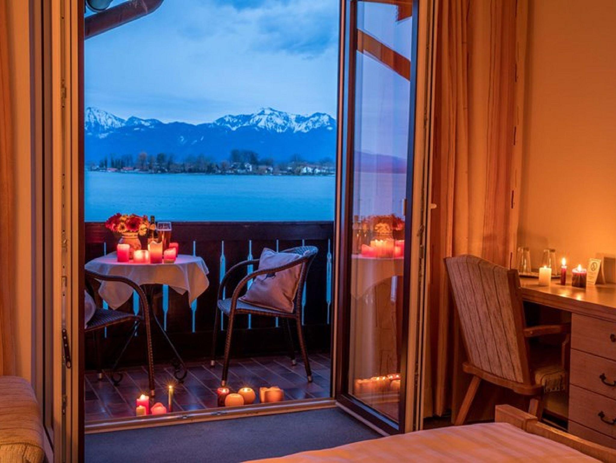 Gästehaus Grünäugl am See, 1 Doppelzimmer mit Balkon und direktem Blick auf den Chiemsee und die Berge
