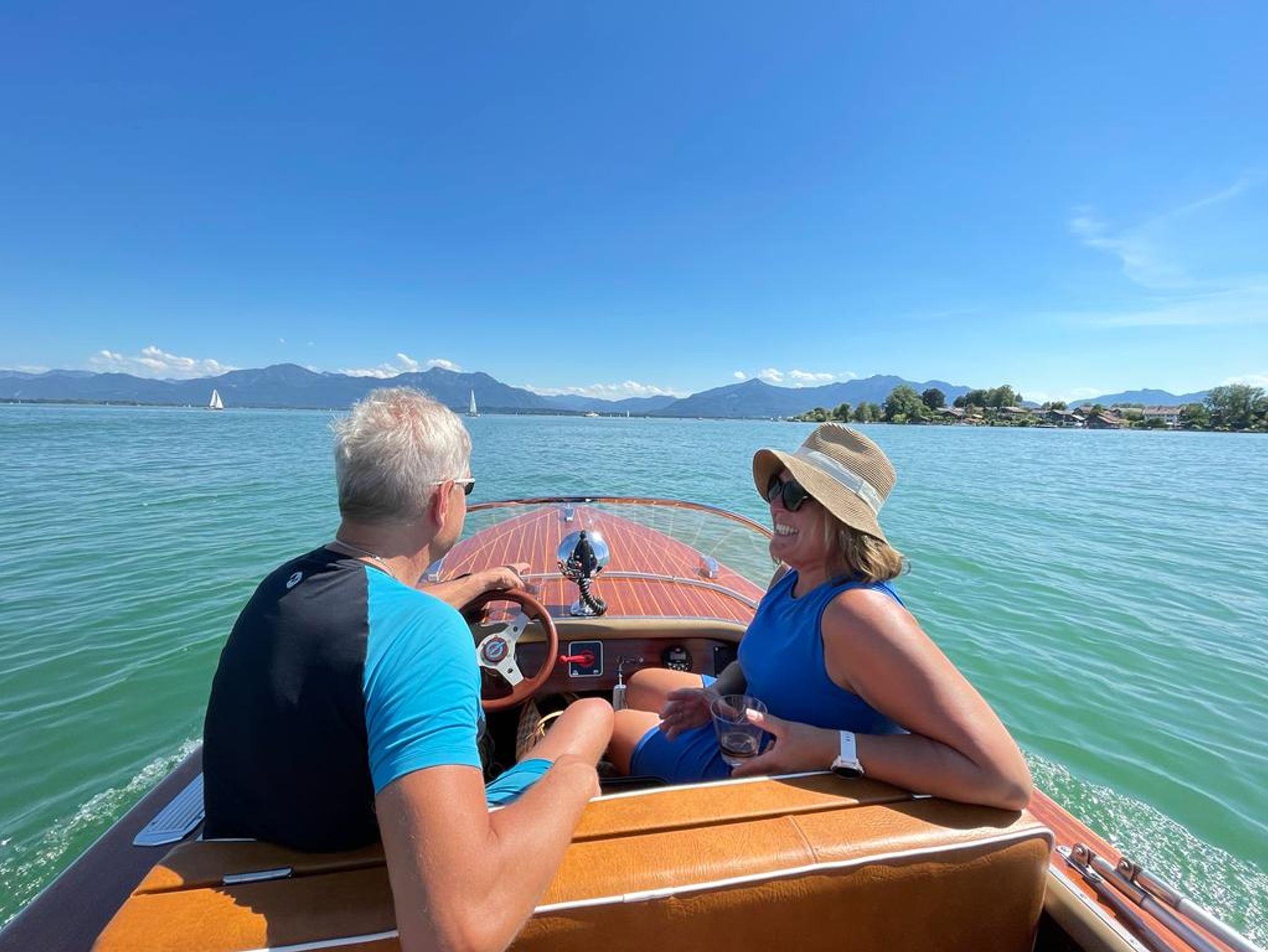 Die geräumige Ferienwohnung im 1. OG ist im gemütlichen Landhausstil hochwertig eingerichtet und hat einen eigenen Zugang zum Balkon mit herrlichem Blick auf Ufer, See und Berge.