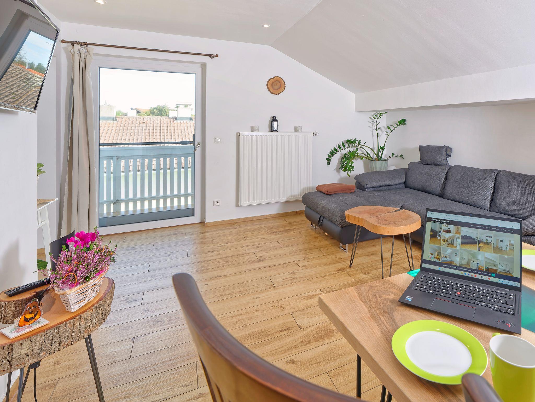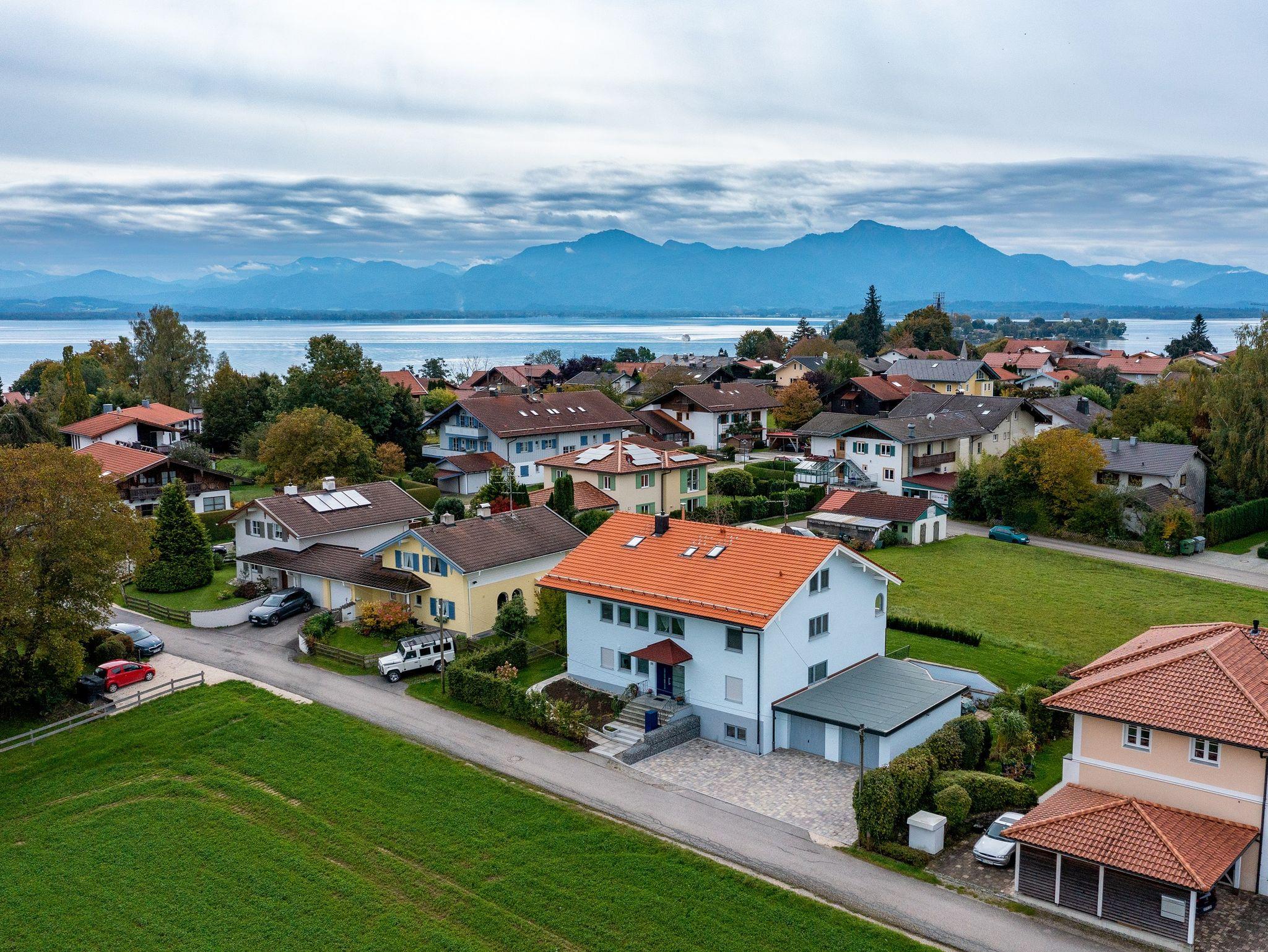 Neu renovierte Ferienwohnung im DG in herrlich ruhiger Lage am Ortsrand von Gstadt. Traumhaft ist der Blick von dem Balkon auf die Berge. Der malerische Chiemsee ist nur wenige Gehminuten entfernt. Bäcker, Postfiliale und Einkaufsmöglichkeit sowie Boots- und Fahrradverleih sind in Gehdistanz. Die öffentliche Badestelle und der Bootsanleger sind auch in wenigen Minuten zu Fuß erreichbar. Die Wohnung ist 2020 hochwertig renoviert worden, neue Bäder, neue Einbauküche mit Geräten, vollverfliest mit hochwertigen italienischen Fliesen in Holzoptik. Die Wohnung hat Dachschrägen, was eine sehr gemütliche Atmosphäre gibt. Das Dach wurde 2020 nach neuestem Standard isoliert und ist daher Sommer wie Winter angenehm temperiert.Wir stellen natürlich auch gerne Ausflugsempfehlungen, Restaurantempfehlungen und Motorradrouten bereit.