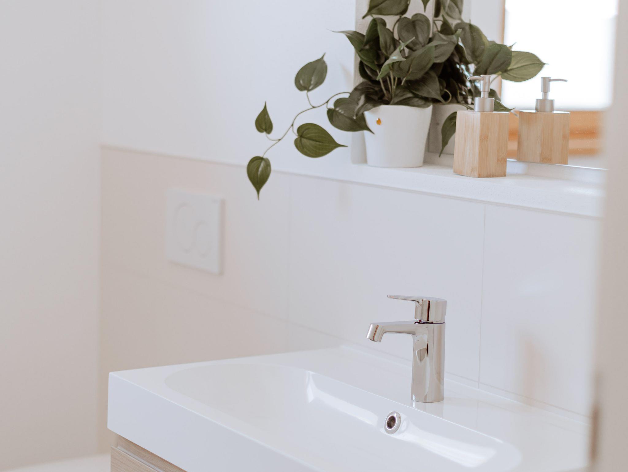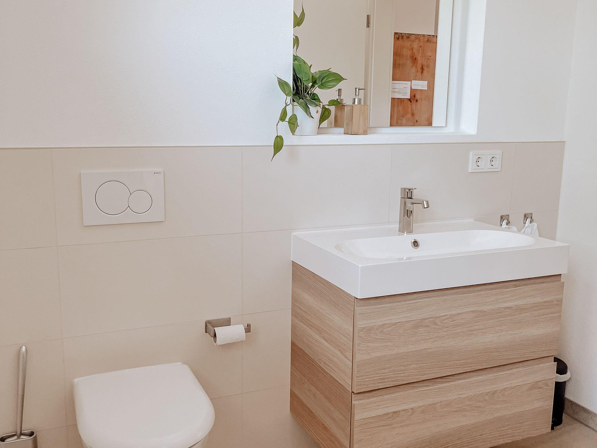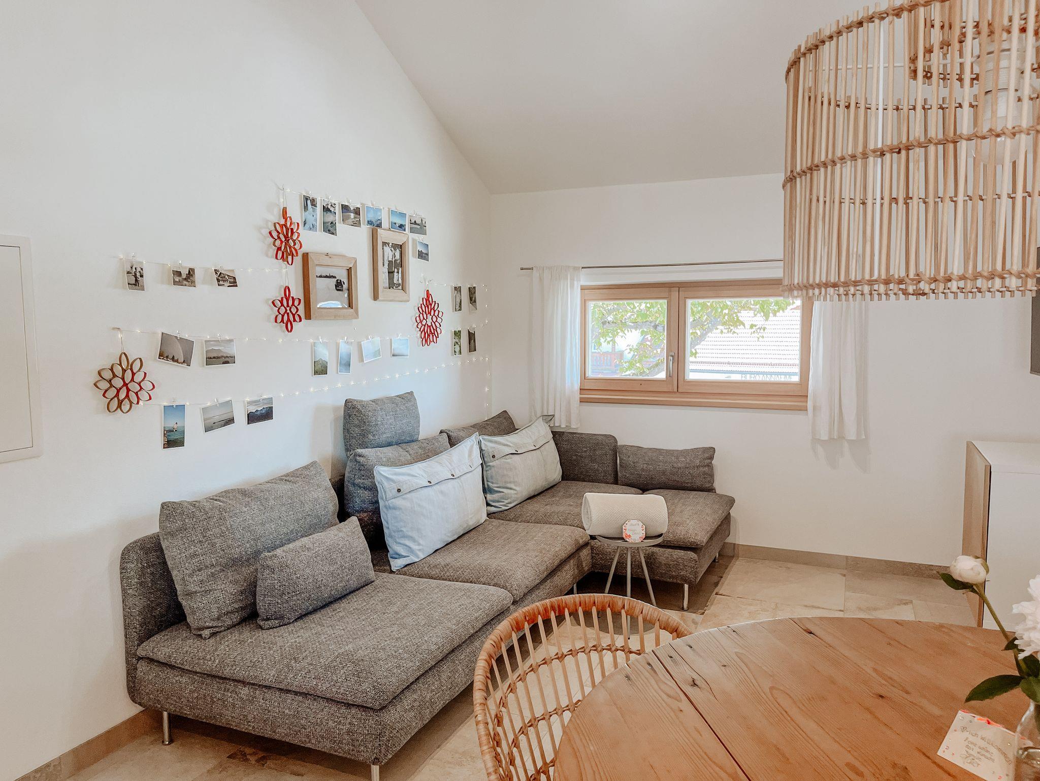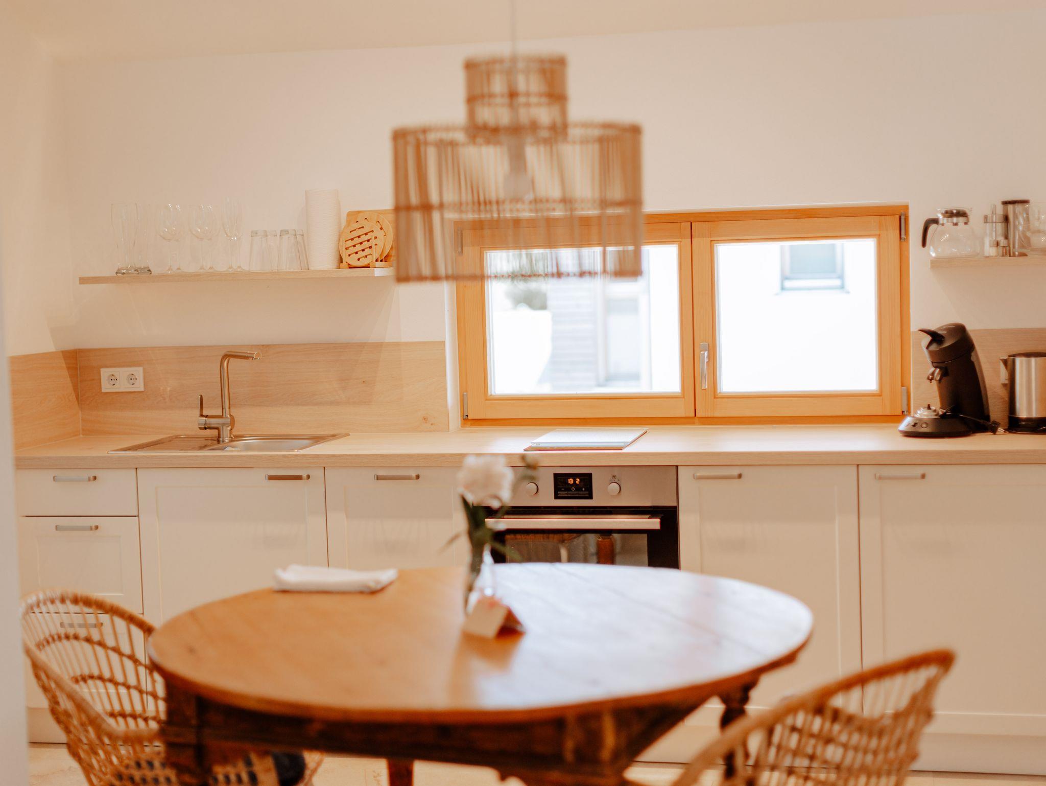 Neubau mit moderner Ausstattung über Außentreppe erreichbar. Separater Eingang. Die Wohnung verfügt über ein Schlafzimmer mit einem Doppelbett mit 180 x 200 cm, ein Bad und eine voll ausgestattete Küche mit Esstisch und einem gemütlichen Bereich mit Couch zum Entspannen. Privatparkplätze, Mitbenutzung der Terrasse im Garten, Obstgarten, WLAN, Fernseher, keine Hunde. Kinder auf Anfrage.