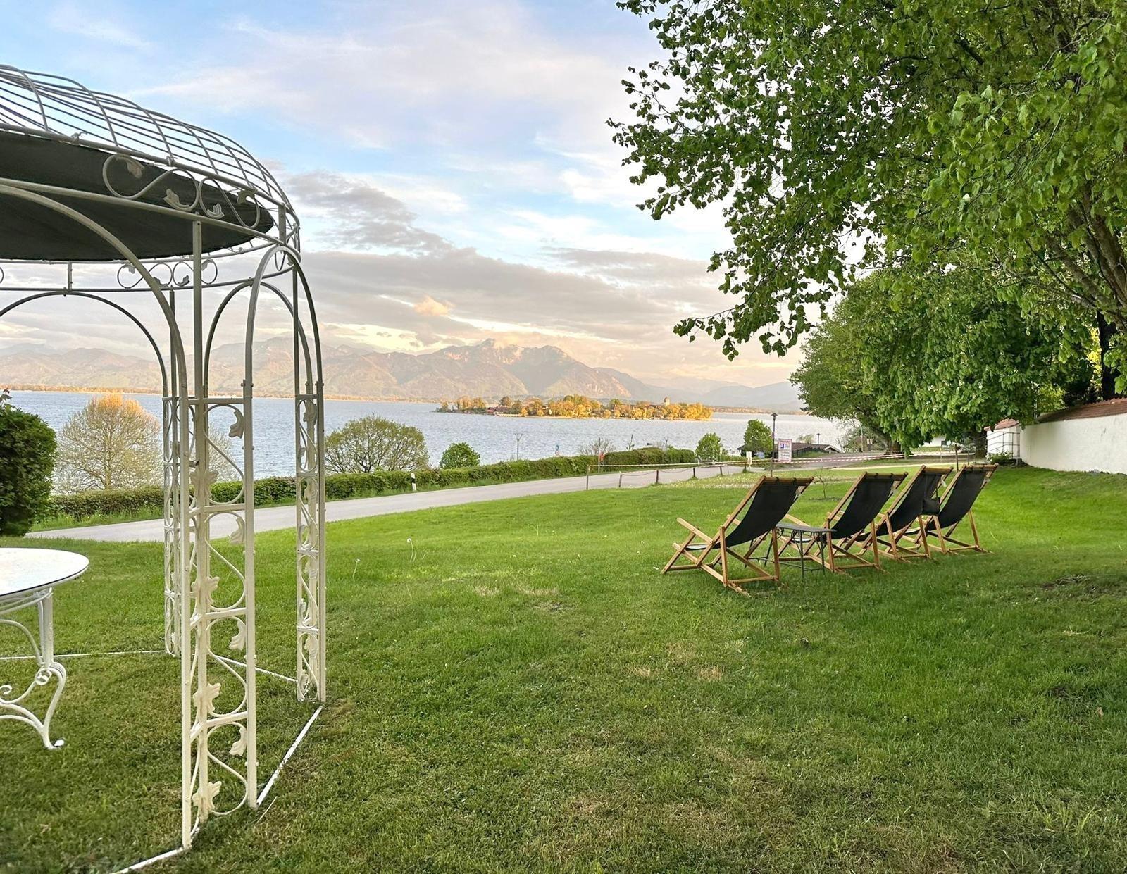 Idyllisch, mit Blick auf das bayerische Meer, den Chiemsee, gelegen, lädt diese luxuriöse Ferienwohnung in einer denkmalgeschützten Jugendstil Villa zum Traumurlaub ein. Die Ferienwohnung Villa Victoria als stilvolles Apartment bietet einen direkten Blick über den See, die Fraueninsel und die Alpen. Die 3-Zimmer-Wohnung bietet Platz für bis zu sechs