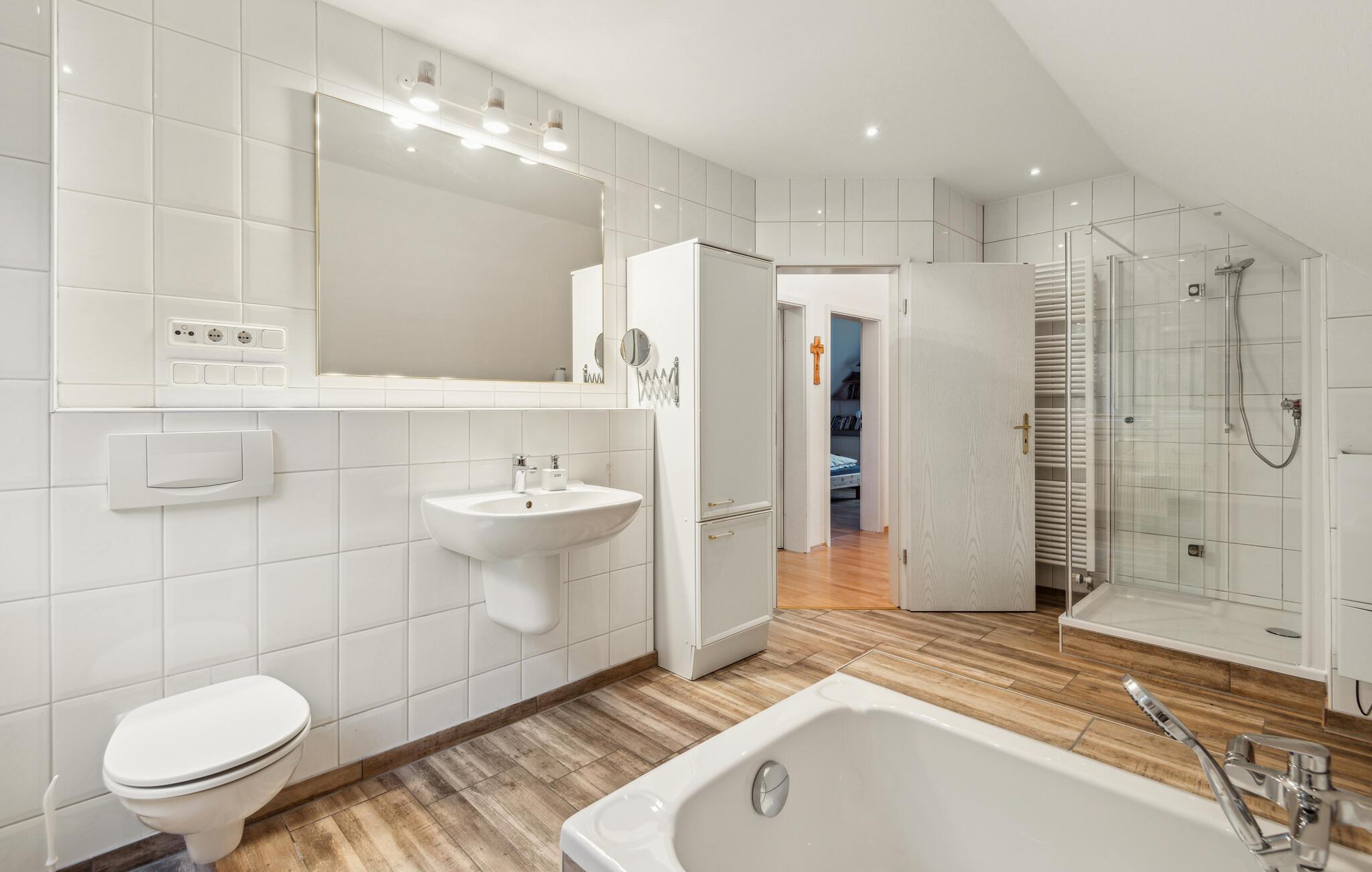 - WC mit warmem und kaltem Wasser, Handbrause und Badewanne
