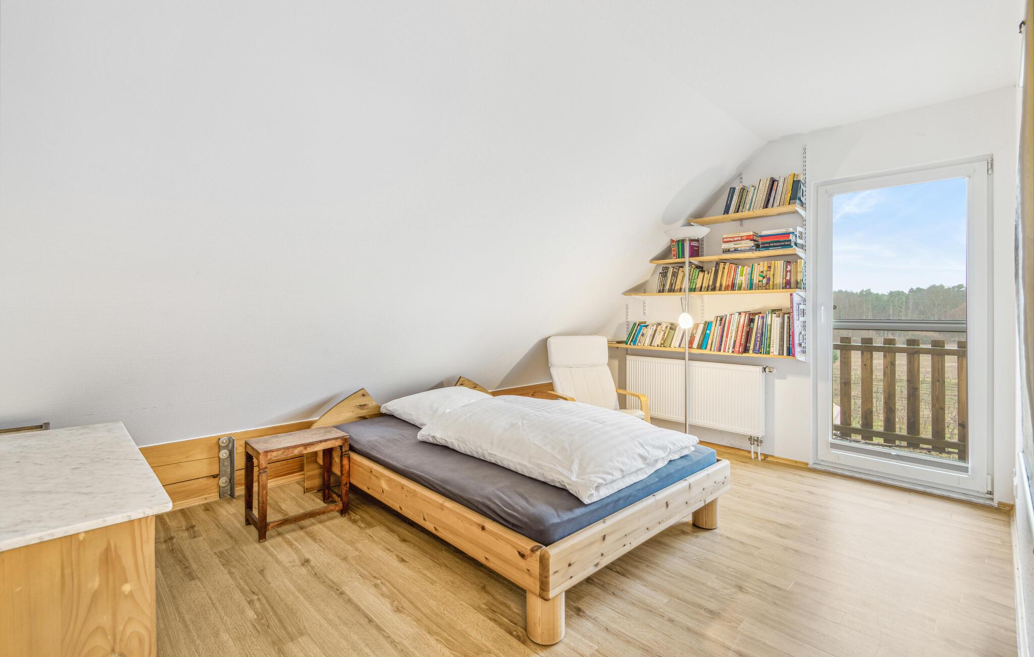Entfliehen Sie den Stadtleben und genießen Sie erholsame Tage in diesem einladenden Haus in sehr ruhiger dörflicher Randlage, zwischen Kiefernwald und Weinberg. Das Haus bietet Platz für Ihre Großfamilie oder zwei befreundete Familien, die Ihren hektischen Alltag hinter sich lassen wollen und in dem Haus alles für unbeschwerte Ferien finden. Veranstalten Sie am Abend gemeinsame Kochabende, denn die Küche ist mit vielem Zubehör, für Backen bis Braten, gut ausgestattet oder Sie entspannen bei einem unterhaltsamen Film auf dem Sofa.