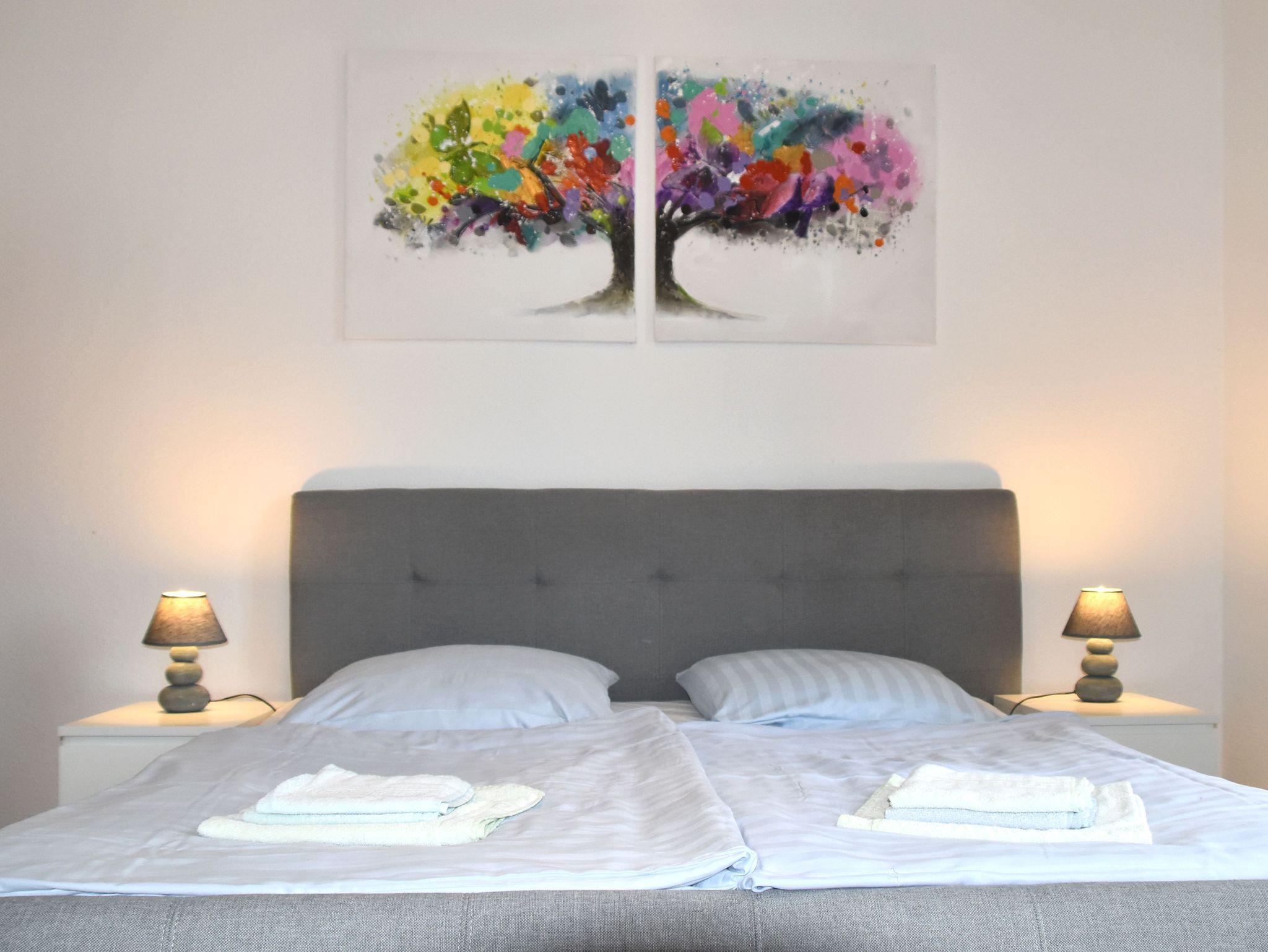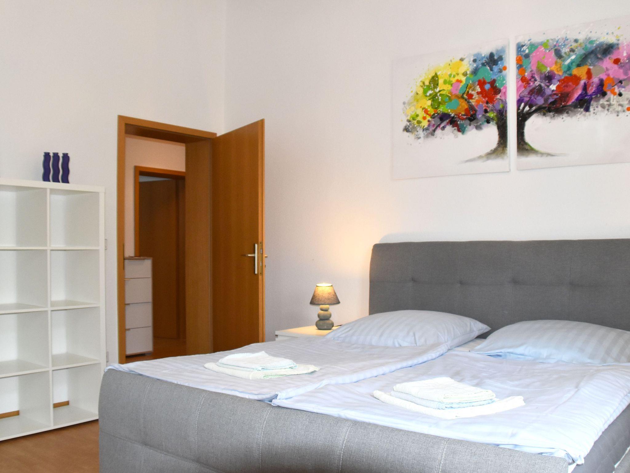 ruhig, Nichtraucherwohnung, Bad mit Dusche,1 Schlafzimmer mit Doppelbett, 1 Wohnzimmer mit Schlafsofa: für 4 Personen; Wohnküche
