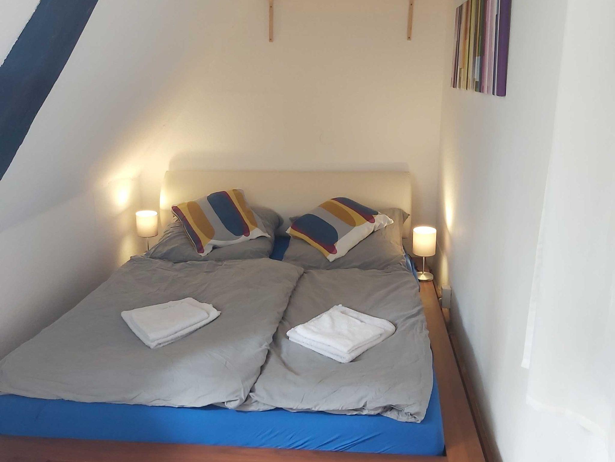 Sie Wohnen in einer ca. 100 m2 Ferienwohnung in einem typischen, denkmalgeschützten Fachwerkhaus mit 3 separaten Schlafzimmern und 4 separaten Betten. Die Wohnung befindet sich im ersten Stockwerk.