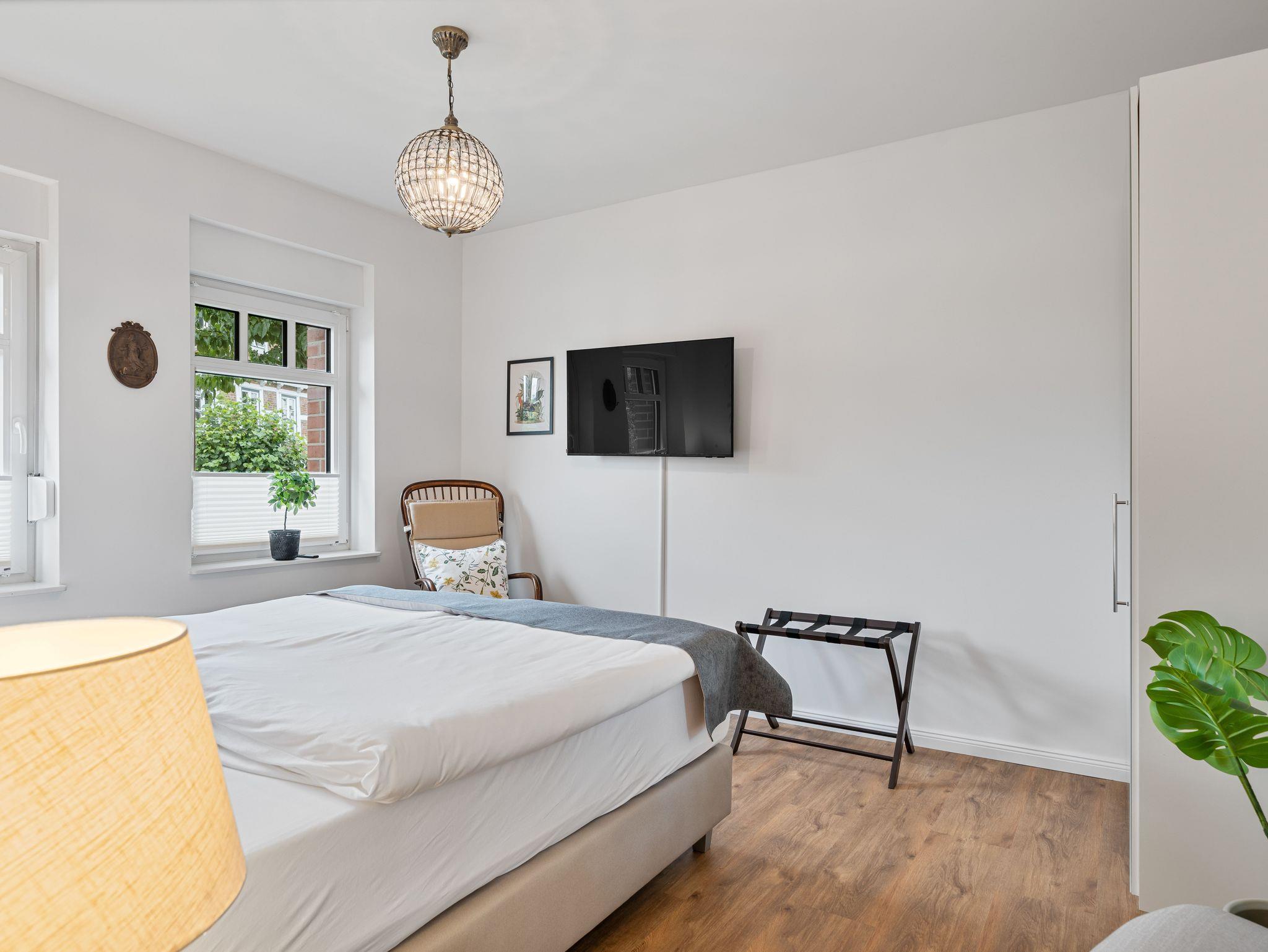 • SZ 1: Boxspring-Doppelbett (180 x 200), Smart-TV, Plissees als Sichtschutz, Rolläden