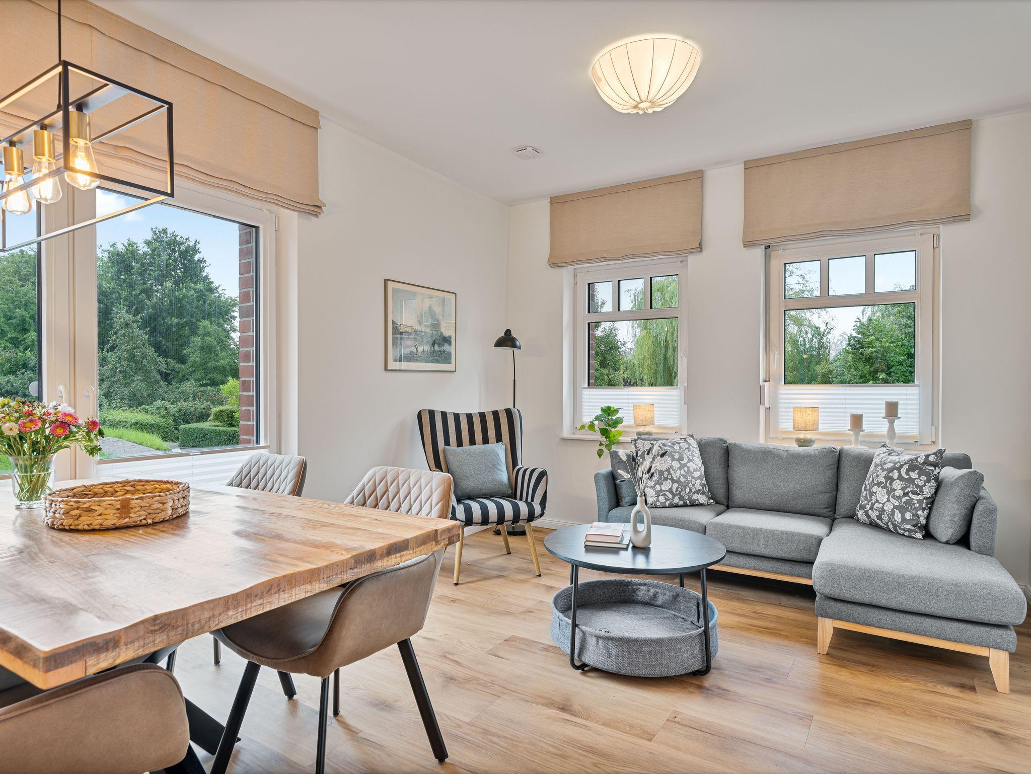 Die 69 qm große familienfreundliche Ferienwohnung Lühedeich hat 2 Schlafzimmer und bietet Platz für 4 Erwachsene oder 3 Erwachsene + 2 Kinder/Jugendliche. Die im Sommer 2025 fertiggestellte Fewo liegt im Erdgeschoss auf dem Deich und hat einen separaten Eingang. Die Wohnung ist modern und gemütlich eingerichtet und voll ausgestattet. Vom Wohnzimmer/Küche oder der Terrasse haben Sie einen schönen Blick auf die Wiese und die Lühe.