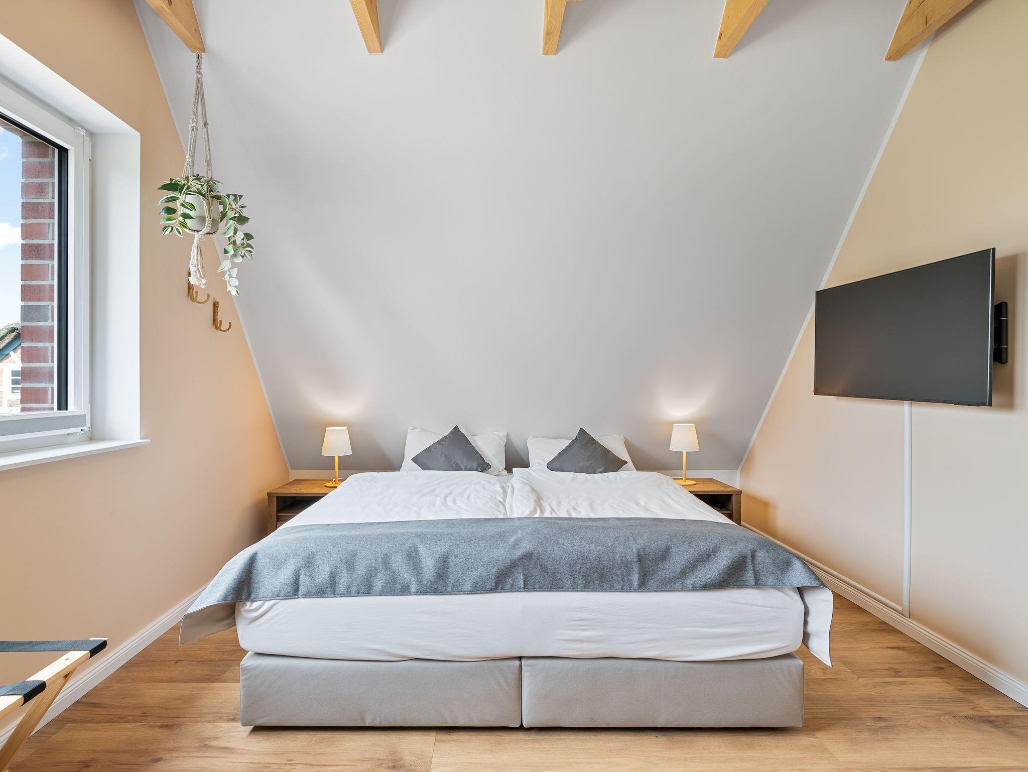• Schlafzimmer 1: Boxspring-Doppelbett (180 x 200), Smart-TV, Verdunkelungsplissees