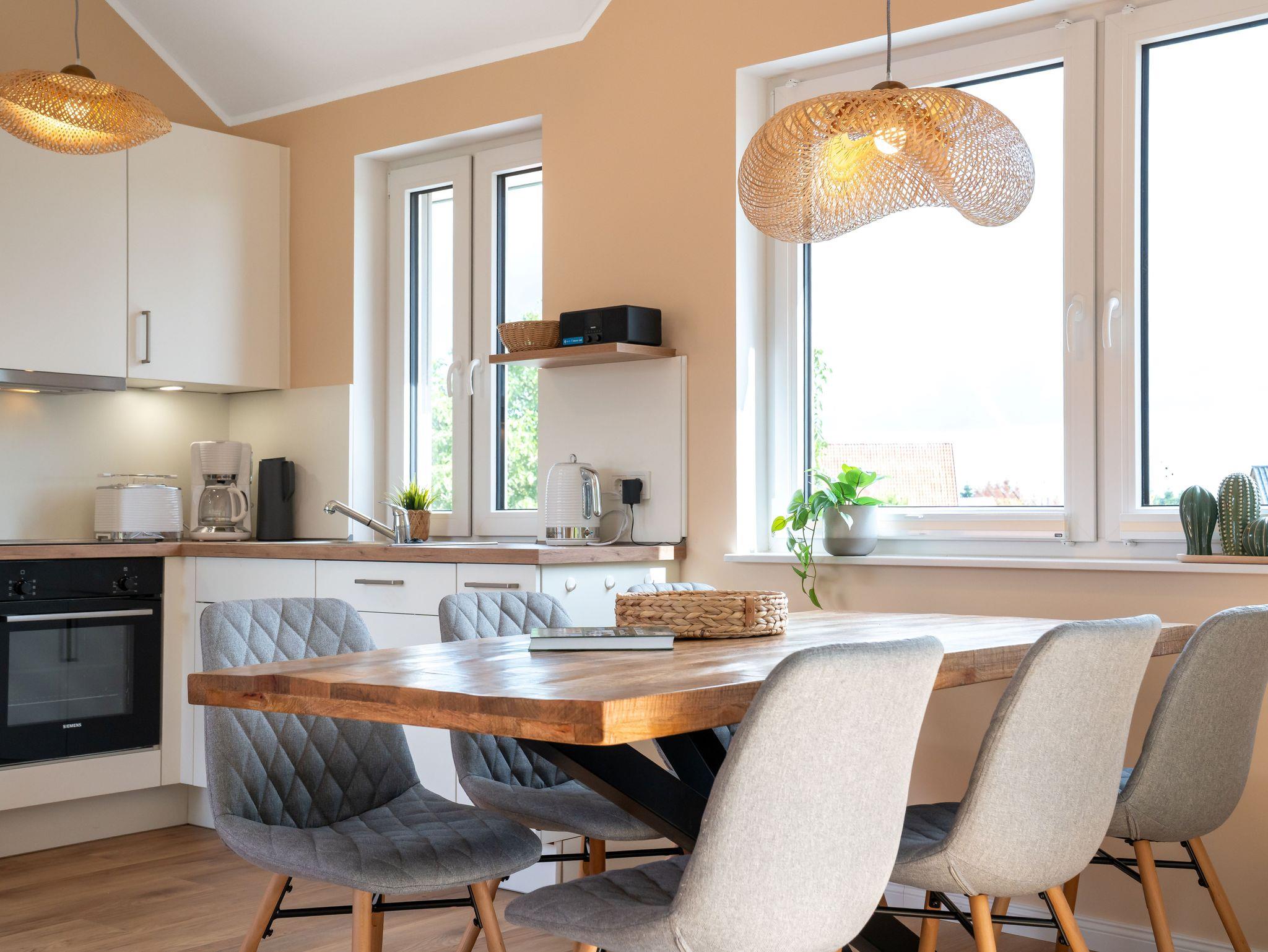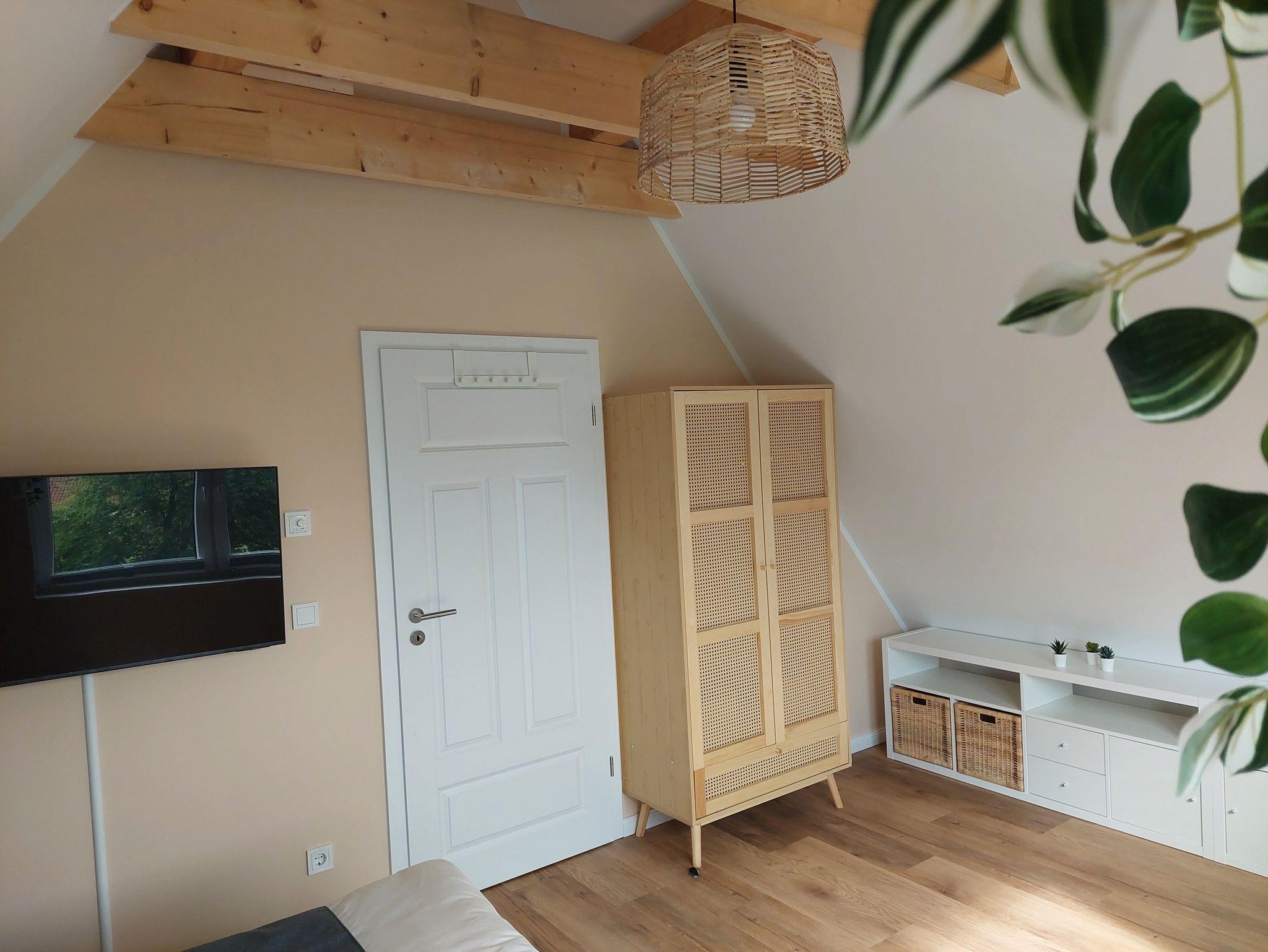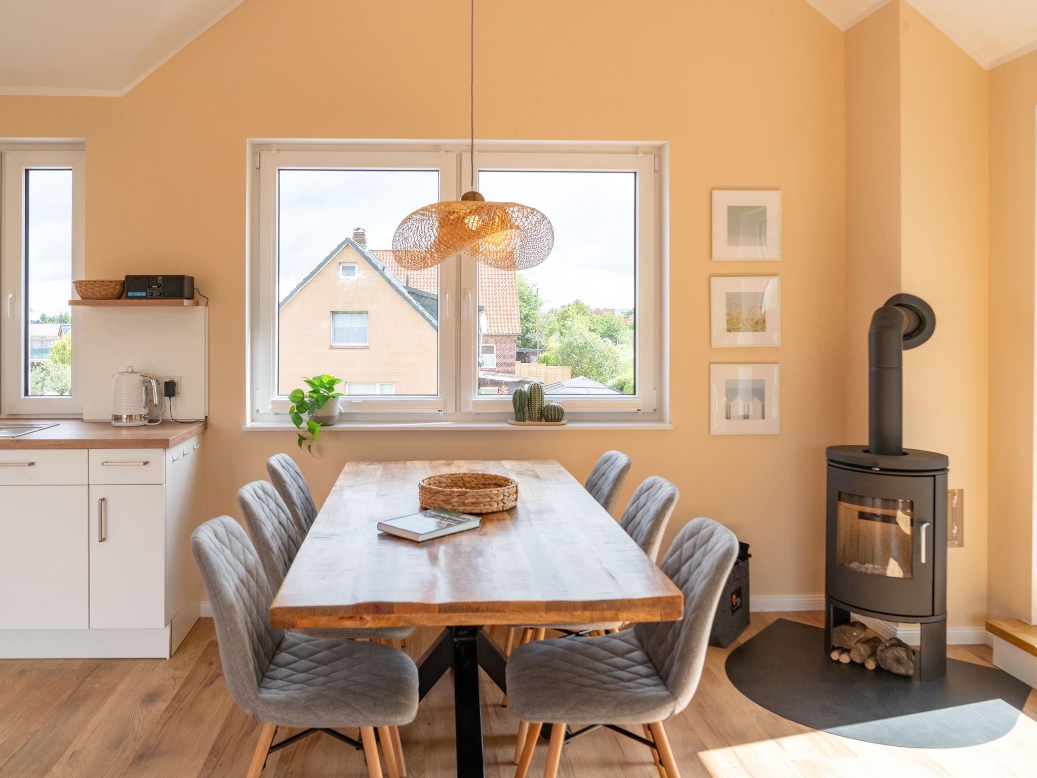 Die charmante 94 qm große, geräumige Ferienwohnung Lüheblick hat 3 Schlafzimmer und bietet Platz für 6 Erwachsene oder 5 Erwachsene + 2 Kinder. Die im Sommer 2025 fertiggestellte Fewo liegt im Obergeschoss. Die helle, gemütlich eingerichtete Wohnung verfügt über eine große Dachterrasse, von der Sie einen fantastischem Blick auf die in wenigen Metern vorbeifließende Lühe haben. Sie ist modern und voll ausgestattet. In der kalten Jahreszeit bietet ein Kaminofen zusätzliche Gemütlichkeit