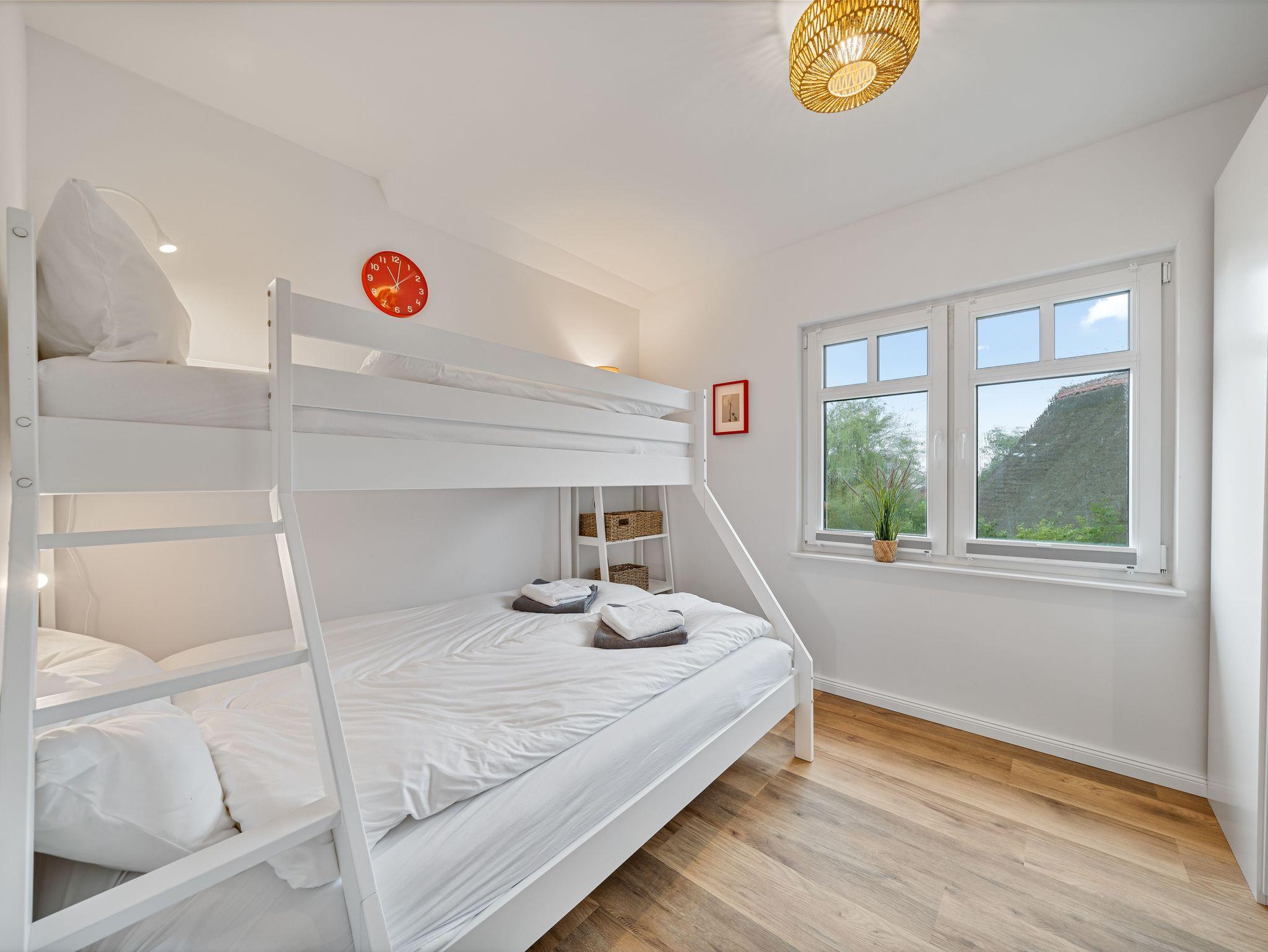 • Schlafzimmer 2: Etagenbett (oben 90x200, unten 140x200), Verdunkelungsplissees