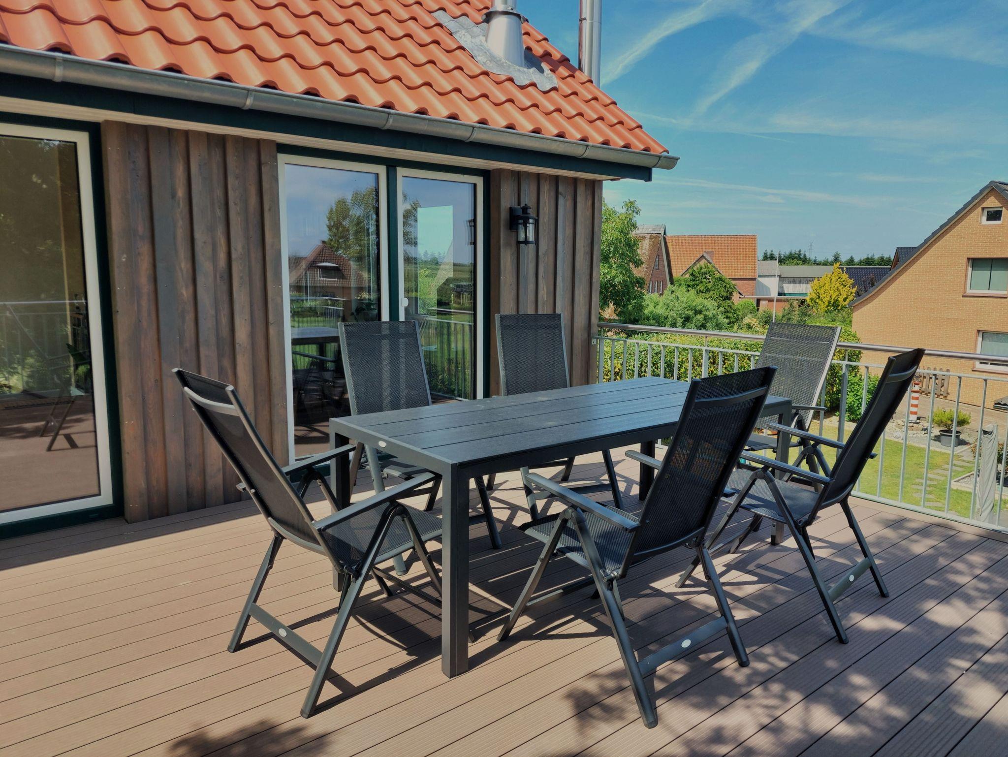 • Dachterrasse mit Gartenmöbeln und Elektrogrill