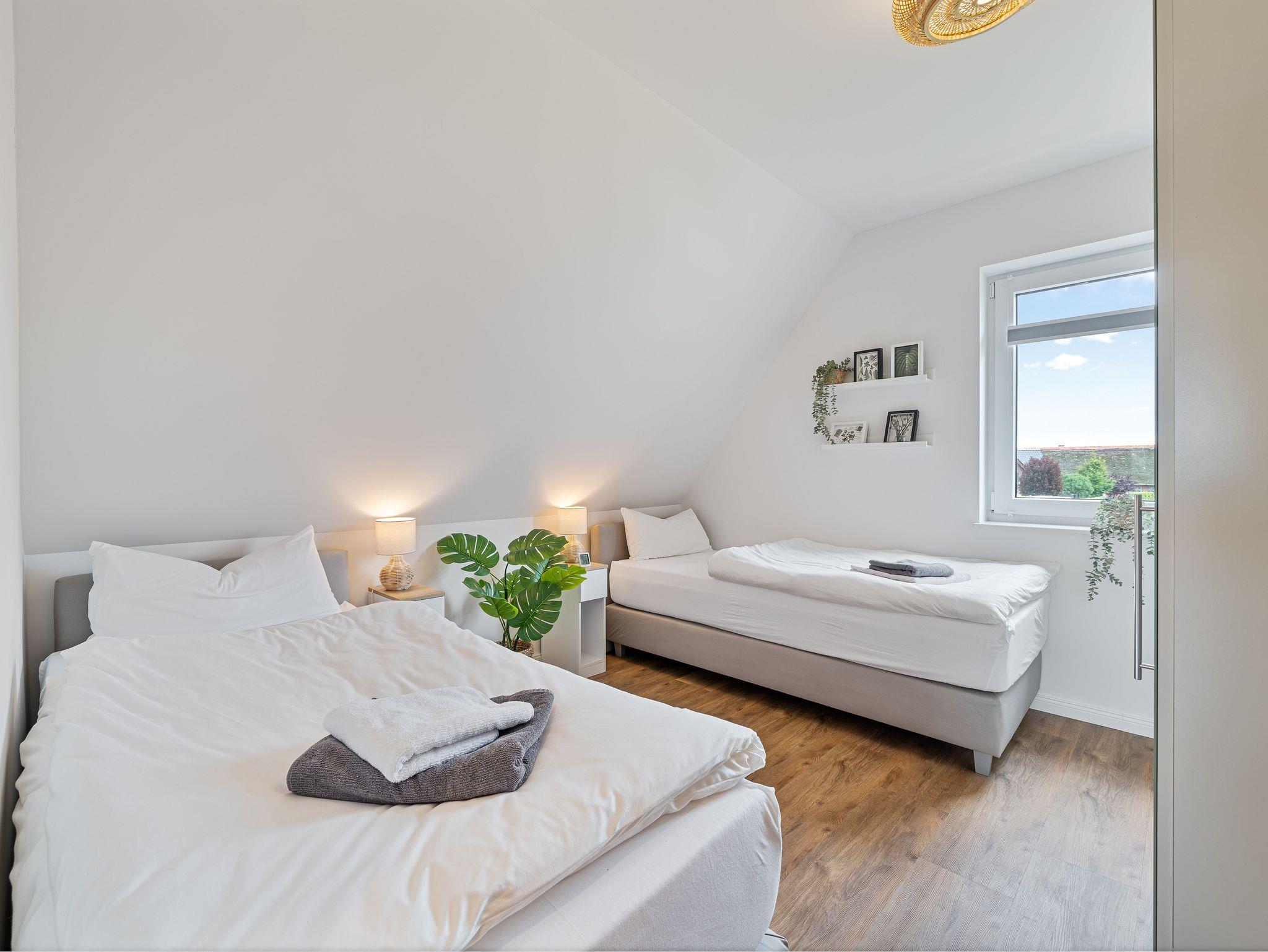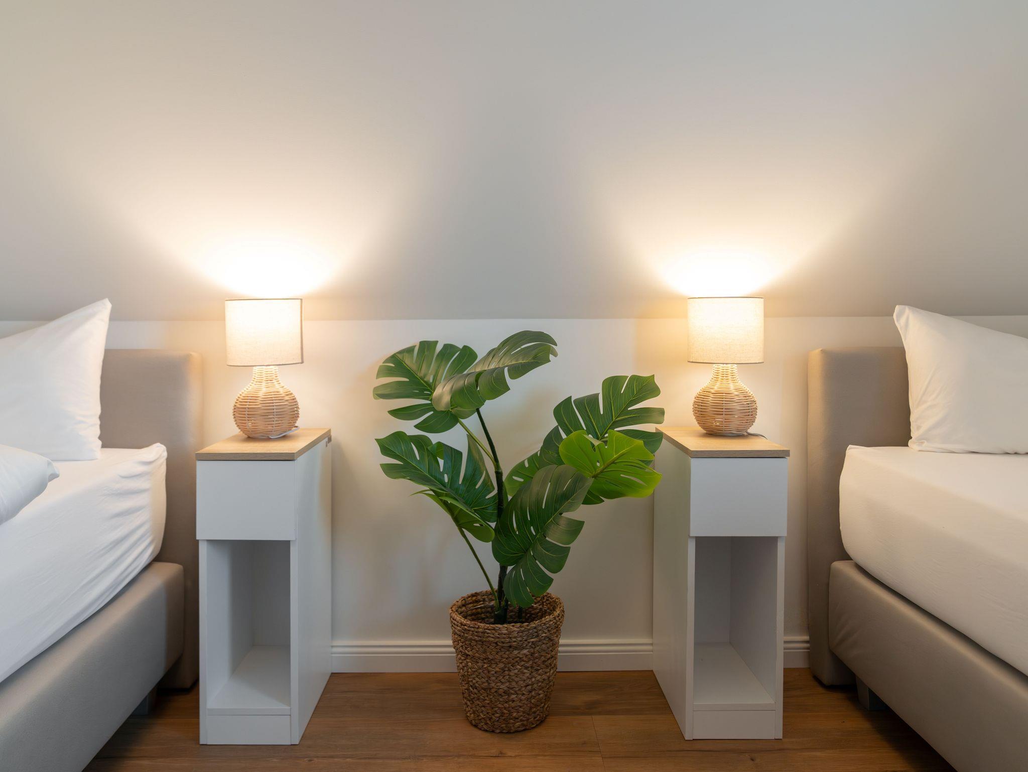 • Schlafzimmer 3: 2 Boxspring-Einzelbetten, Waschmaschine in einer Nische, Verdunkelungsplissees