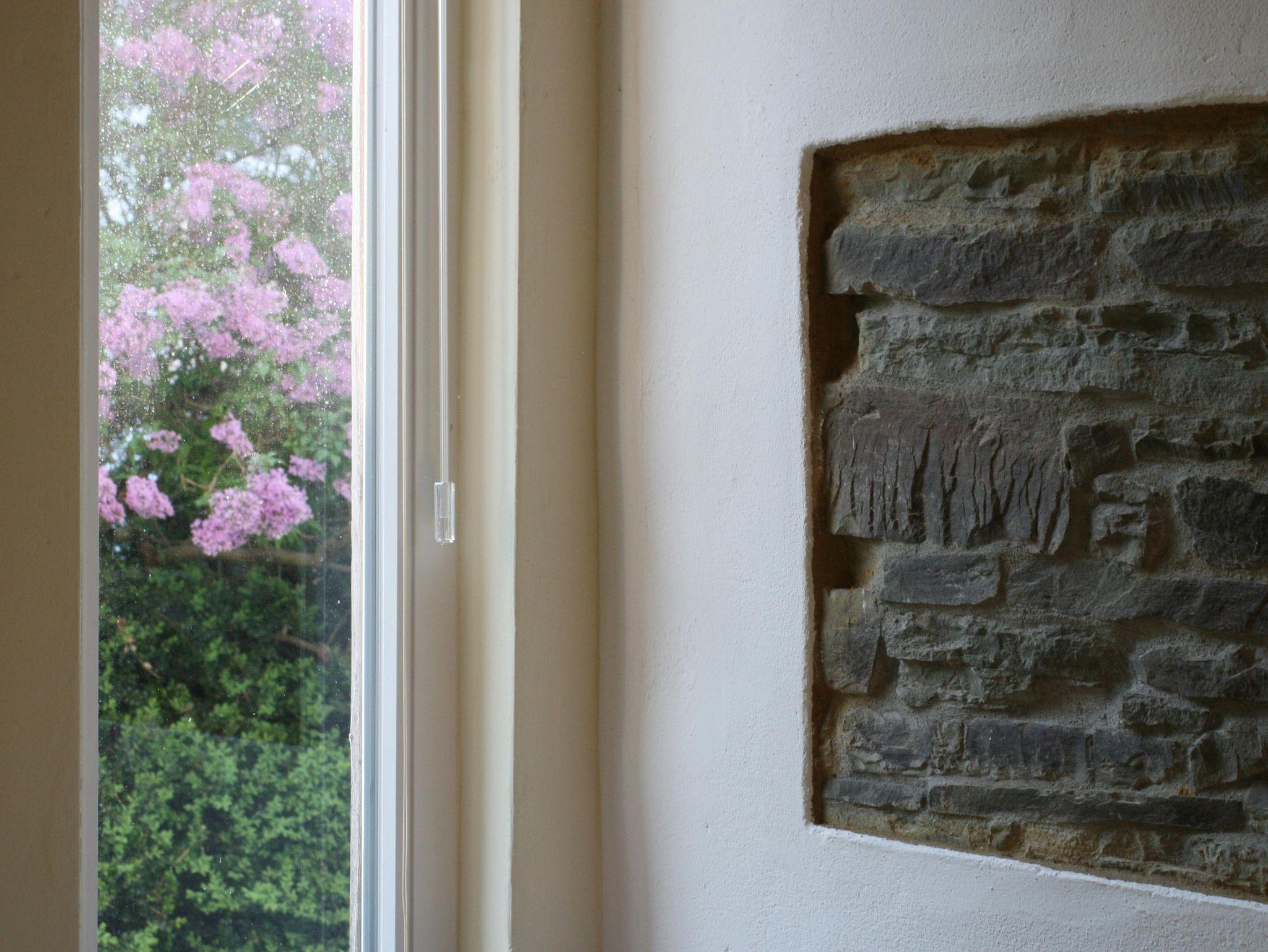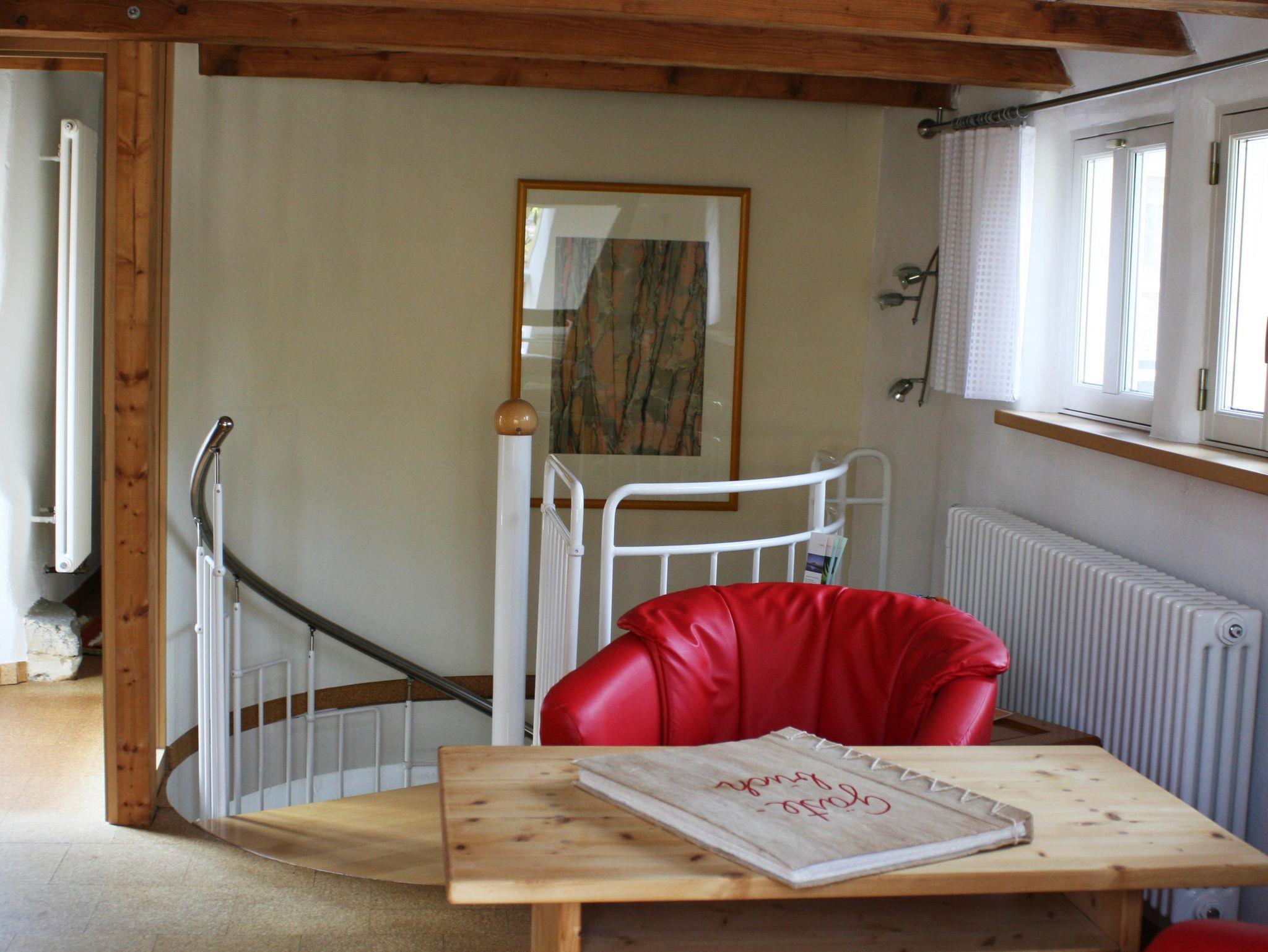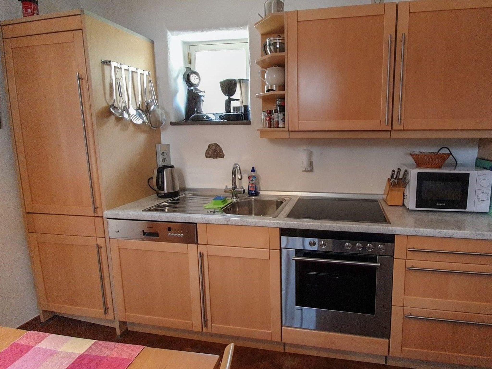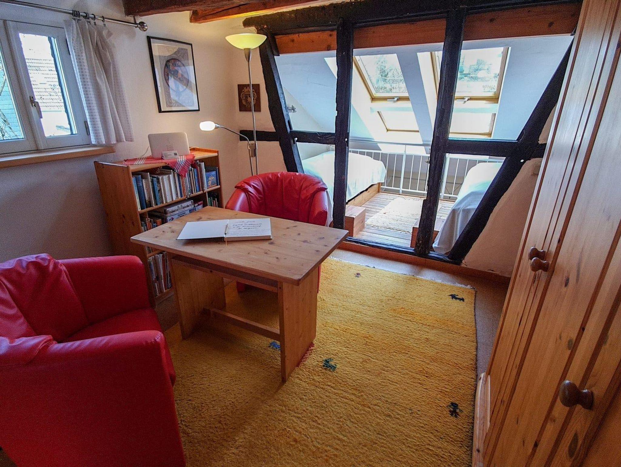 Urlaub genießen, den Naturpark Bergisches Land entdecken und im Anbau eines 300 Jahre alten Denkmals gemütlich und komfortabel wohnen. Zur Ferienwohnung gehören ein Stellplatz, ein kleiner Bauerngarten und eine große Terrasse mit wunderschönem Blick auf die Obstwiese. Die voll ausgestattete Küche verführt zum Kochen und Backen. Eine gemütliche Sitzgruppe lädt im Wohnzimmer zum Entspannen ein. Historische Fachwerkbalken, Bruchsteinwände und ein offener Raum bis in den Dachfirst zeugen von der Geschichte des Hauses. Die alten Baustoffe Lehm, Holz und Kork schaffen ein Raumklima, in dem sich auch Allergiker wohl fühlen. Neben dem Bad führt eine bequeme Wendeltreppe ins Obergeschoss. Eine Sitzecke lädt ein zum Schmökern, Spielen und Malen. Auf der Empore über dem Wohnzimmer kann man von den zwei Einzelbetten 90x200 cm weit über das Tal und in den Sternenhimmel sehen. Das Alter des Gebäudes wird in dem kuscheligen Schlafzimmer mit Doppelbett 180x200 cm noch einmal ganz besonders spürbar.