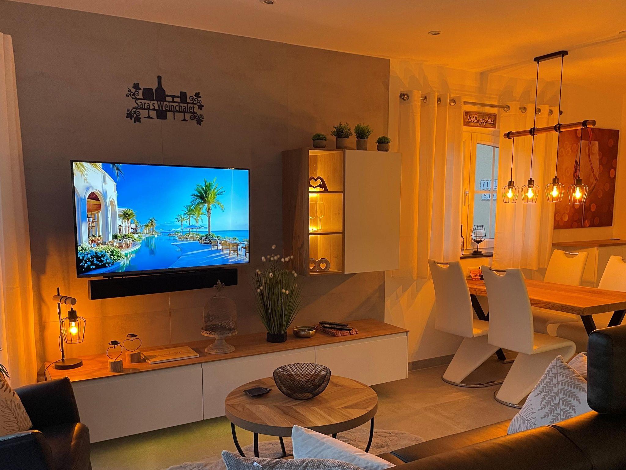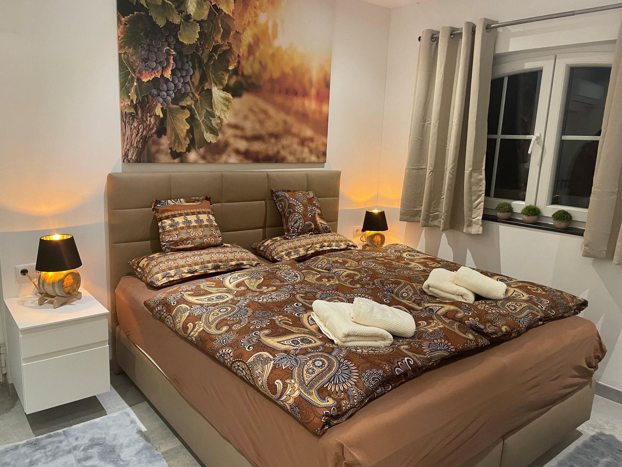 Das charmante, exklusive Ferienhaus Saras Weinchalet liegt im Herzen von Rheinhessen, umgeben von Weinbergen, dem Rhein und einer wunderschöner Natur. Rheinhessen ist eine geographische Gemarkung von Rheinland Pfalz und steht neben einer ausgeprägten Weinkultur auch für ein sehr weitreichendes Freizeitangebot. Ob Radtouren, Wandern, Kultur oder einfach Genießen - hier ist für jeden etwas dabei. Saras Weinchalet ist ein neu erstellter Anbau an die bestehende Villa der Eigentümer, verfügt jedoch über einen separaten Eingang. Der großzügige Garten (1200 qm) mit Outdoor Pool (9 x 5 Meter, geöffnet ca Mai-Okt) kann während Eures Aufenthaltes mitgenutzt werden.