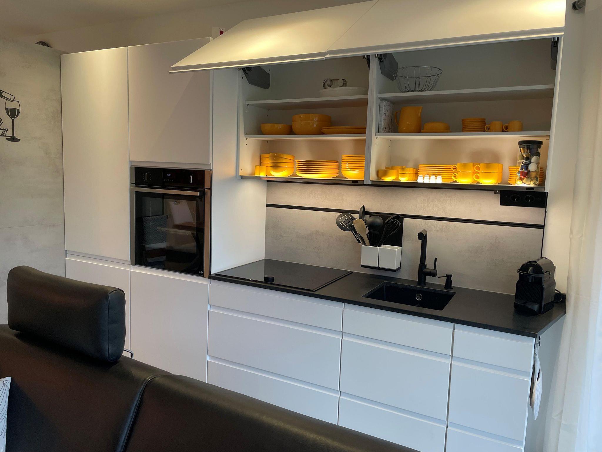 Die Küchenzeile beinhaltet top Markengeräte und bietet Geschirrspüler, Backofen, Kühlschrank, Gefrierschrank, Spüle und selbstverständlich Nespresso Kaffemaschine (Kapseln werden gestellt), Wasserkocher (Tee wird gestellt), Toaster, Mixer uvm sowie eine hochwertige, geschmackvolle Ausstattung an wirklich ausreichend schönem Geschirr, Gläsern, Kochutensilien und Zubehör. Ihr könnt loslegen :-)