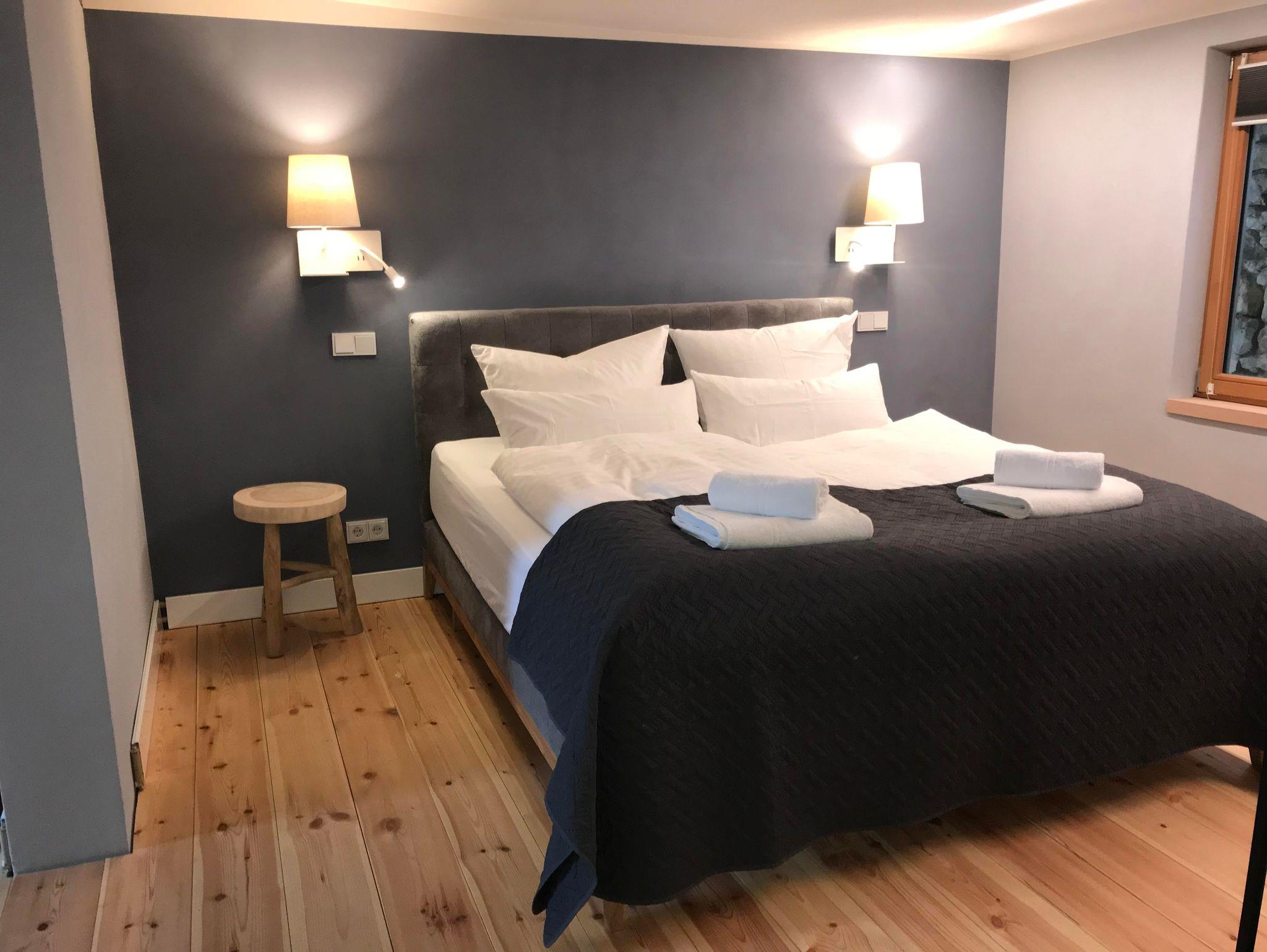 Appartement Kachelberg mit Doppelbett (180x200) und einem Schlafsofa (160x200).