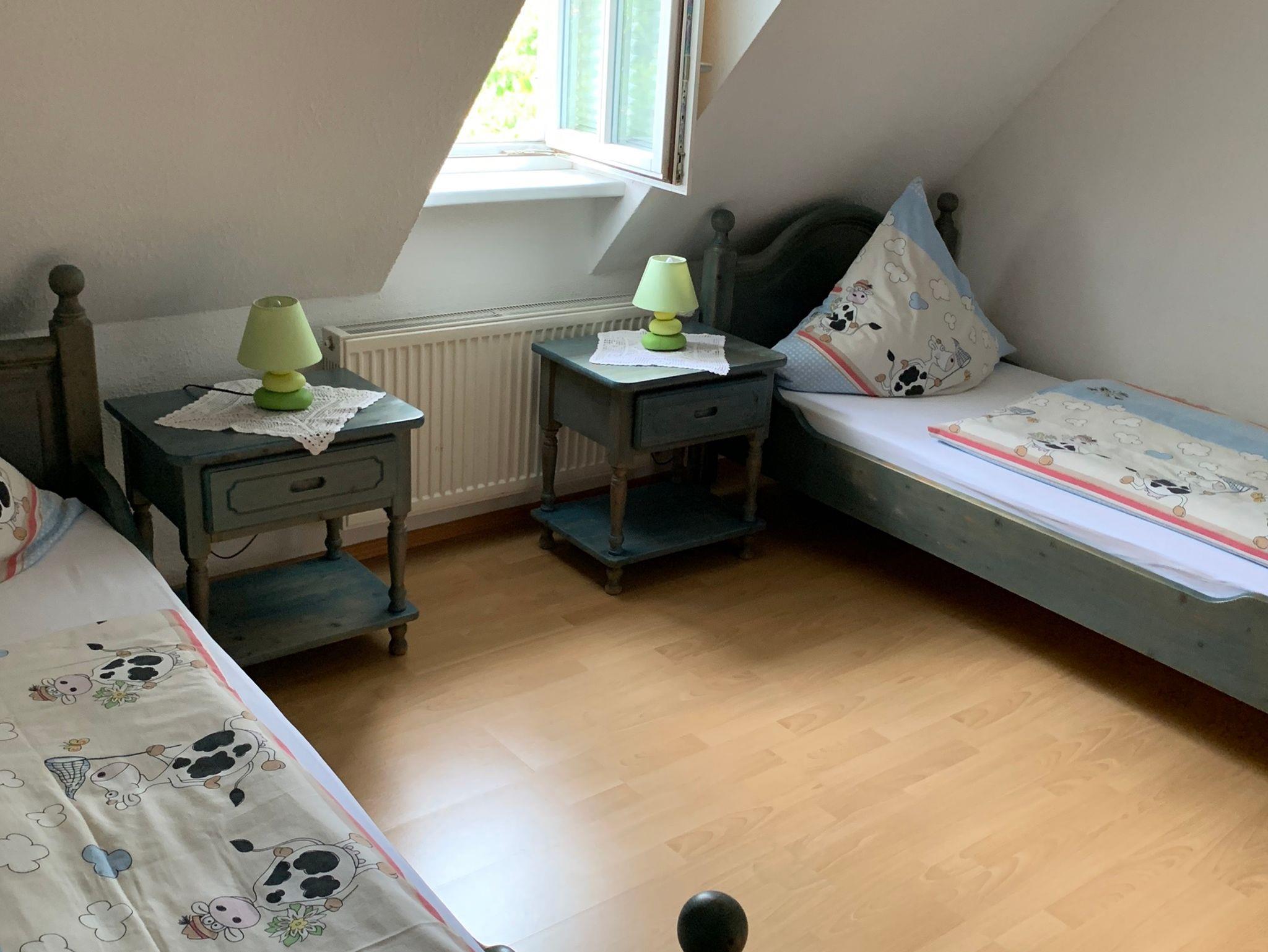 Die freundlich und stilvoll gestaltete Wohnung 3 ist ca. 70 qm groß. Die in sich abgeschlossene Wohnung befindet sich in der 1. Etage, mit Schlafräumen bestehend aus einem Doppelbett mit einem Kinder/-Babybett, sowie einem Zweibettzimmer im Obergeschoss. Im Wohnraum befindet sich eine Essecke, eine Couchgarnitur, Sat-TV und eine komplett ausgestattete Küche (inklusive Spülmaschine, Kühlschrank, Kaffeemaschine, Wasserkocher, Backofen, Toaster). Im Bad mit Fenster ist eine Dusche, ein Waschbecken und ein WC.