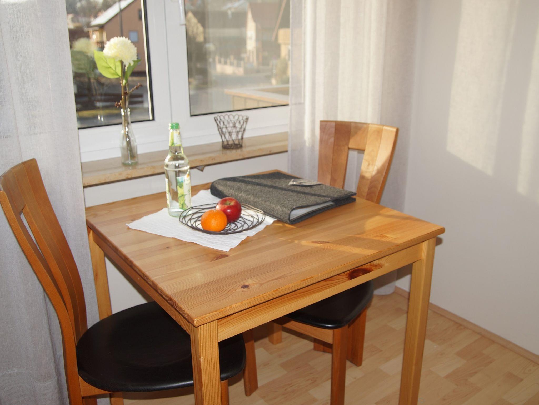 1. Etage, 24qm, Einzimmerappartement mit Doppelbett, Essplatz, Schlafcouch und Küche.