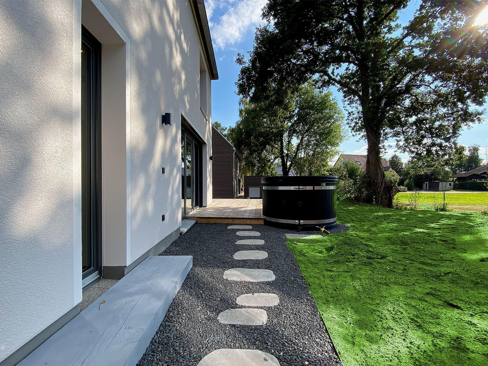 Mit Swimming-Pool, eigener Sauna, eigenem Badezuber (auch Hottub genannt – eine rustikale Form von Whirlpool), Kamin, viel Raum und Privatsphäre verfügen Sie über ein Hide-Away mit extra Wohlfühlambiente in einem modernen, nachhaltigen Holzbau.