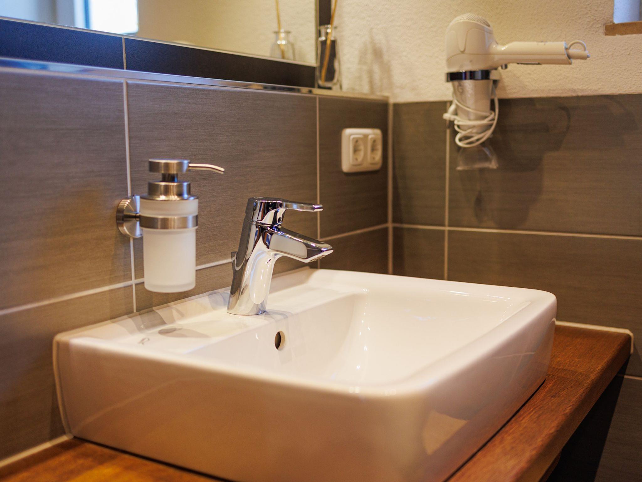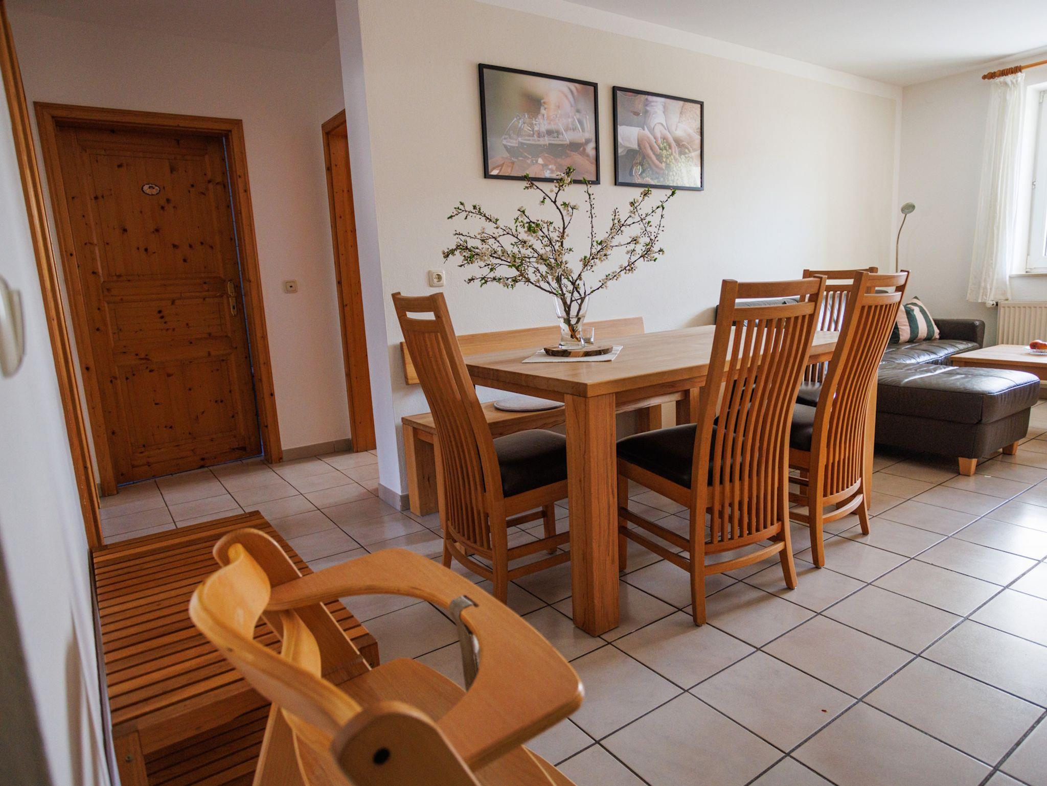 Sie bietet euch drei Schlafzimmer, darunter ein großes Familienbett (260 x 200 cm), sowie einen einladenden Wohnraum mit voll ausgestatteter Küchenzeile, ein modernes Bad mit Dusche und ein zusätzliches WC. Die 70 qm große Wohlfühlwohnung liegt im Erdgeschoss unseres Gästehauses und ist wunderbar geeignet für große Familien und auch für alle, die gemeinsam mit Oma und Opa reisen.
