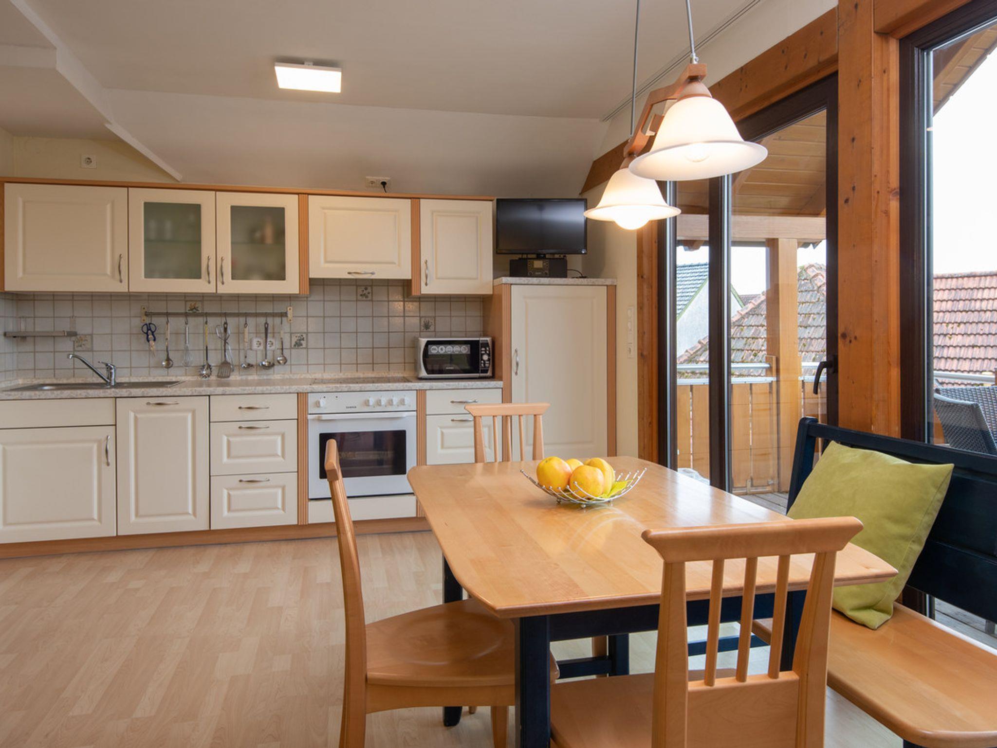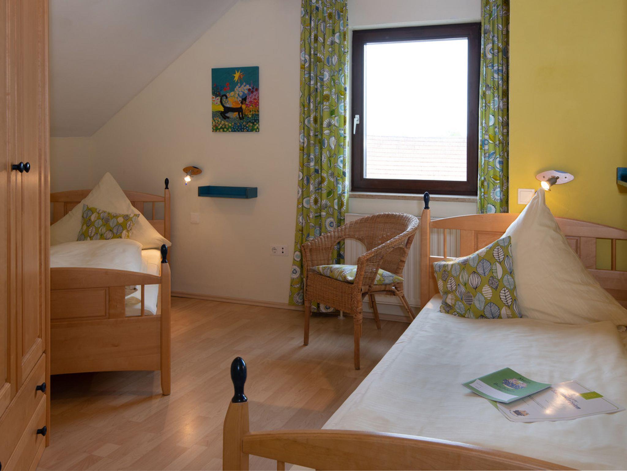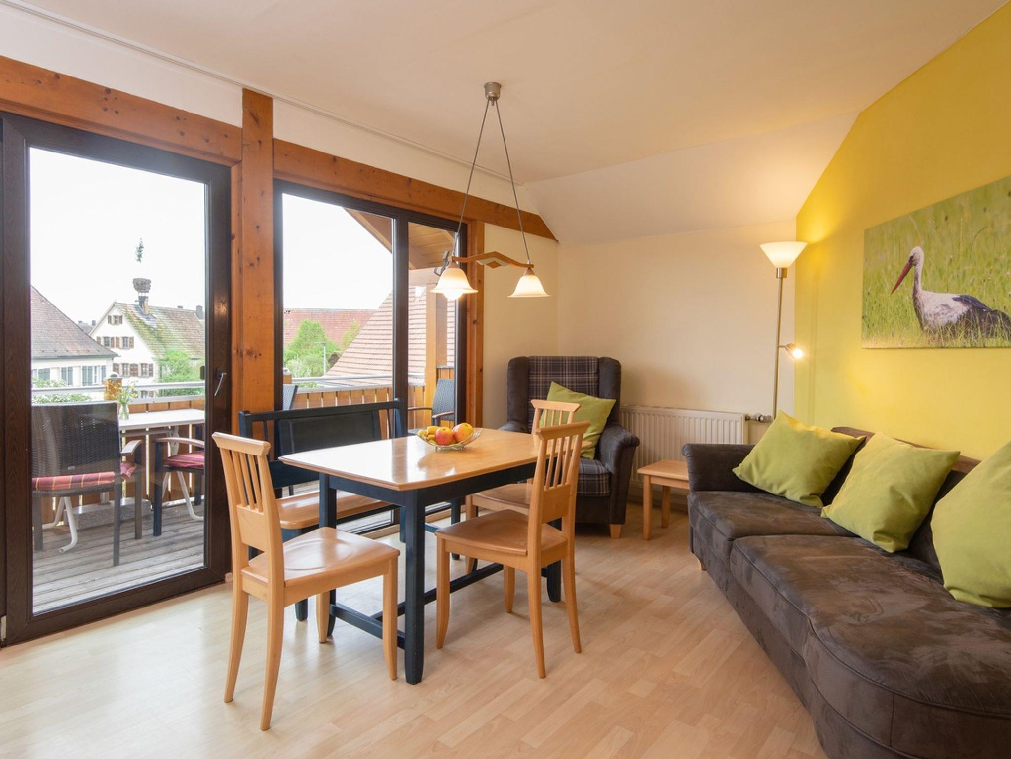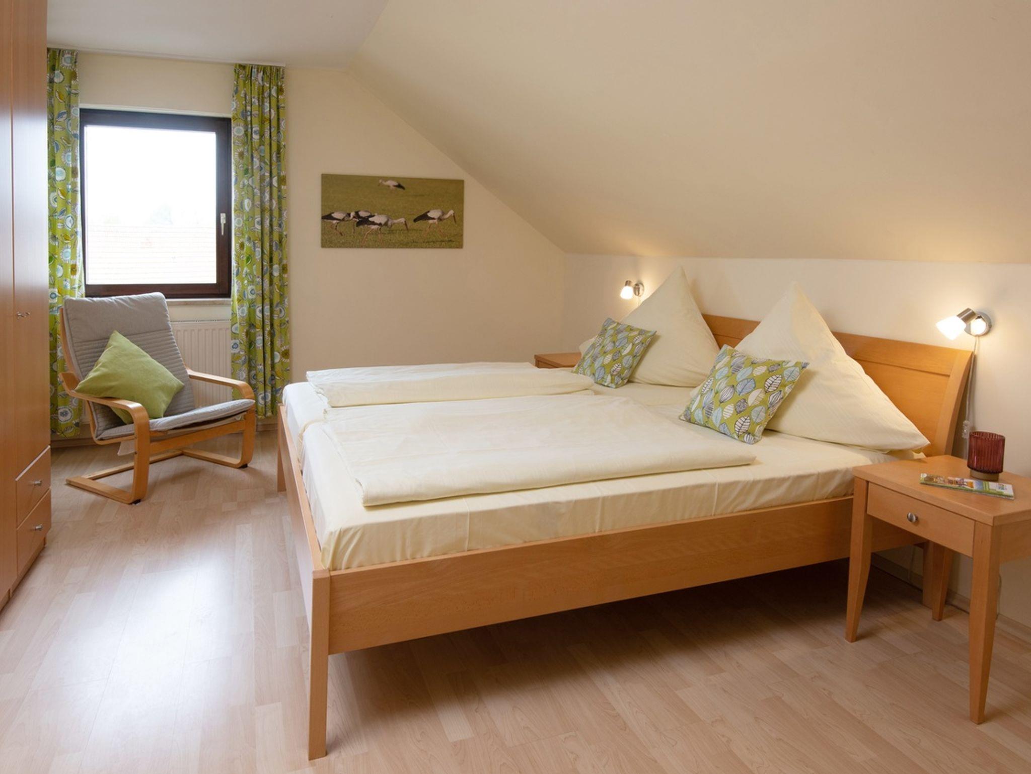 Ferienwohnung Nr. 1 hell und geräumig hat 72 qm, ist mit 4 Sternen (DTV) bewertet, wurde 2018 neu renoviert und bietet Platz für 4 - 5 Personen. Großes geräumiges Elternschlafzimmer mit 1 Doppelbett ( 200x200 ) sowie Kindergitterbett. Kinderzimmer mit 2 Einzelbetten (je 90x190). Die komplett ausgestattete Küche mit Geschirrspüler, Kühlschrank inkl. Gefrierfach, Ceranfeld, Backofen, Mikrowelle, Wasserkocher, Eierkocher, Toaster und Kaffeemaschine mit Mahlwerk lässt keine Wünsche offen. Essplatz und Sofa sowie Flachbild -TV mit Kabelanschluß. Großer überdachten südbalkon mit direkten Blick zum Storchennest.