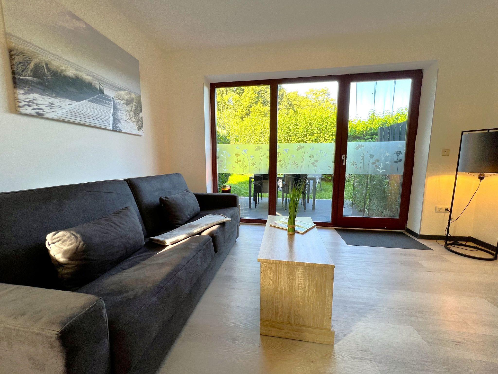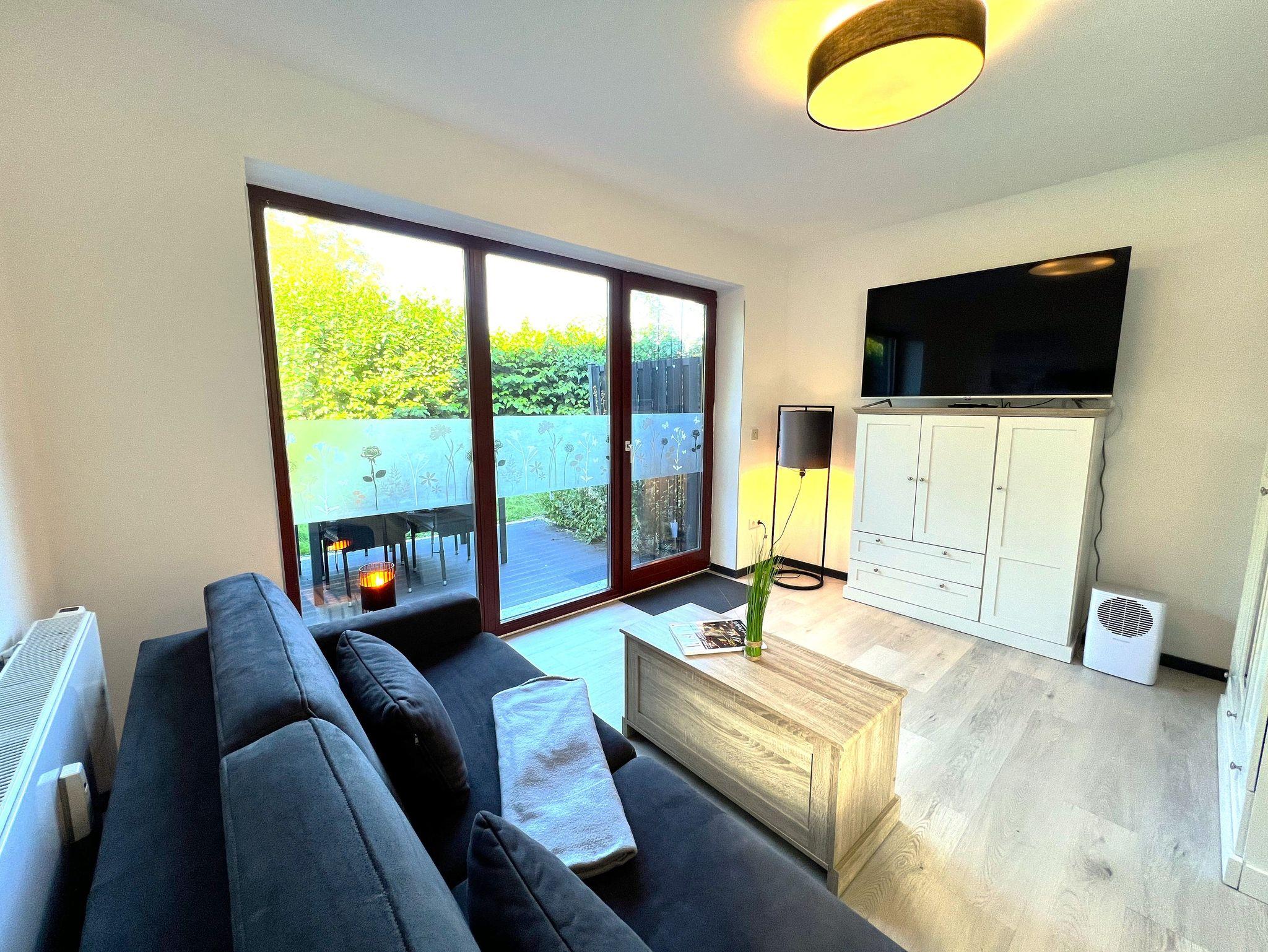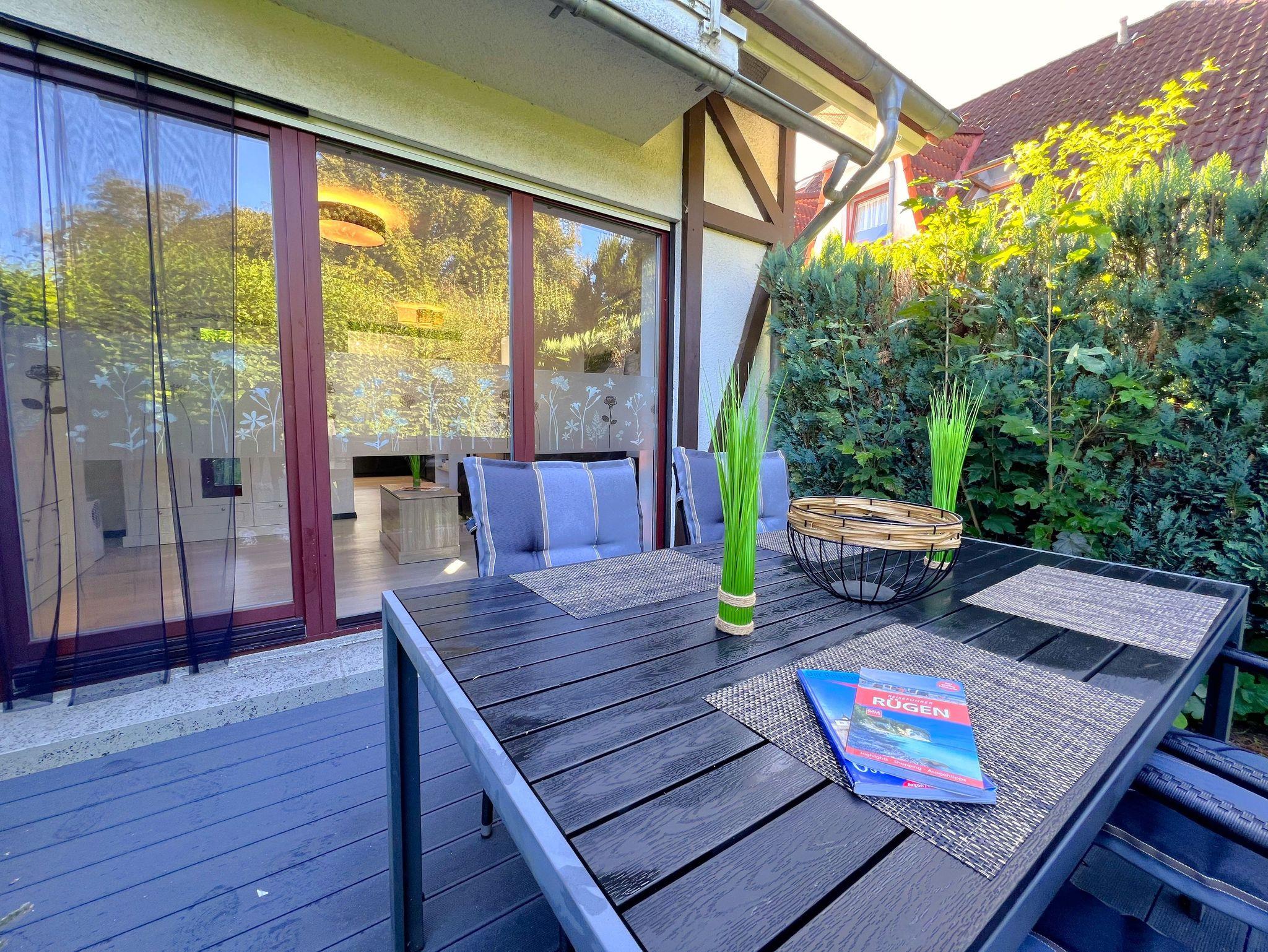 Moderne 1-Zimmer-Wohnung im Ferienpark Gustow mit Terrasse, Garten und naher Badestelle auf Rügen – ideal für erholsame Urlaubstage.