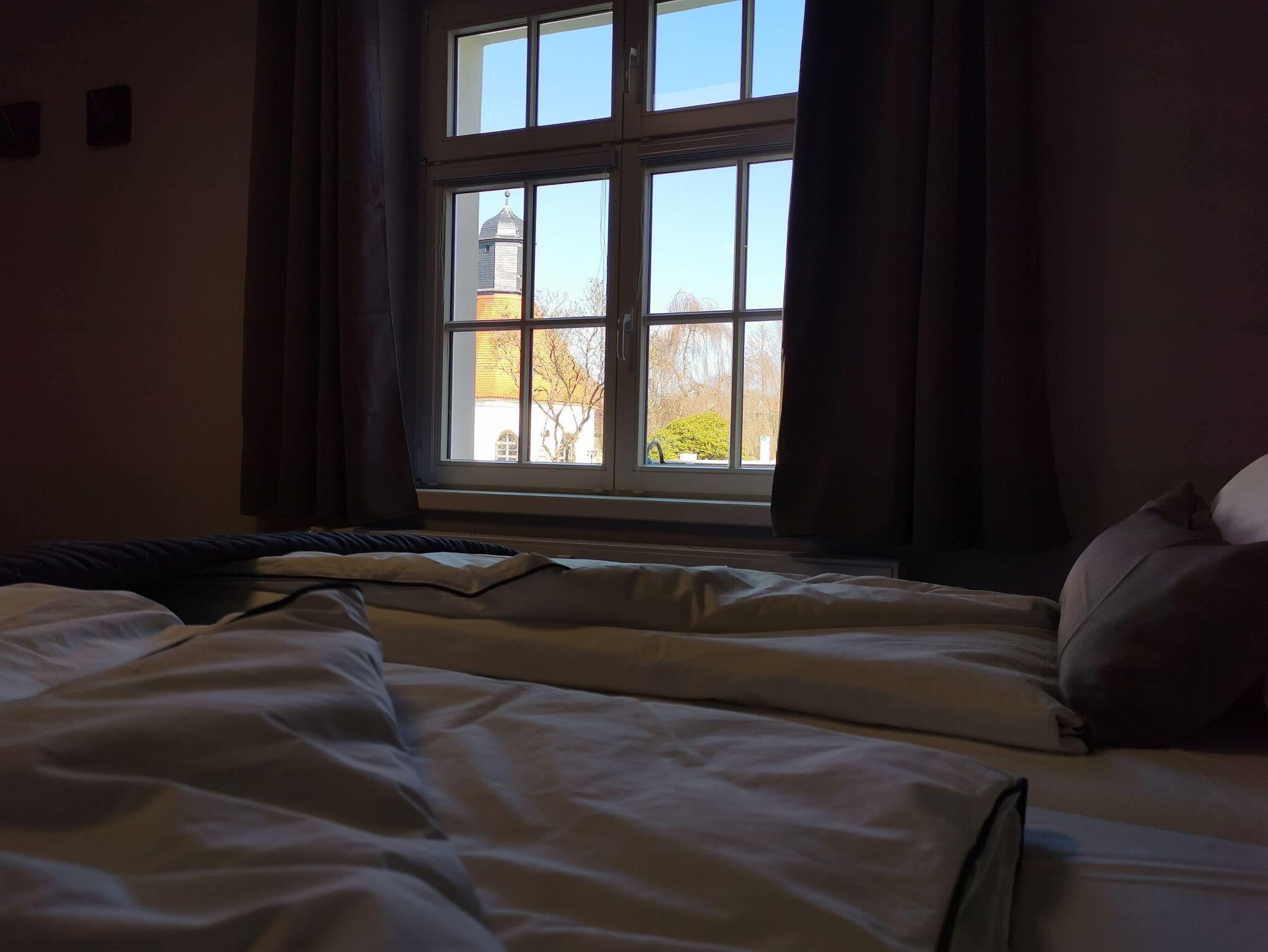 Sie schauen aus dem Fenster direkt in den angrenzenden Buchenwald oder auf die Schlosskapelle.