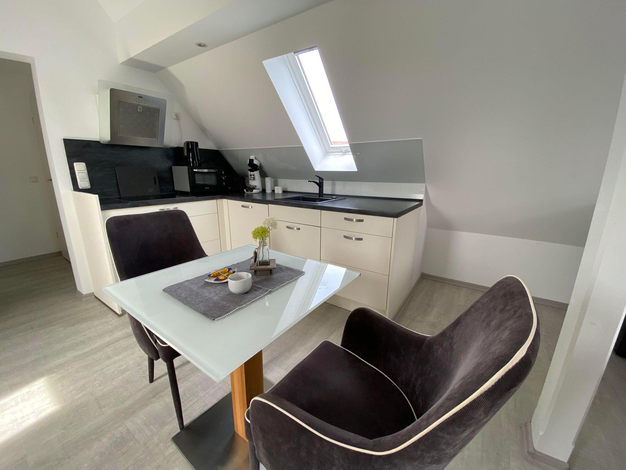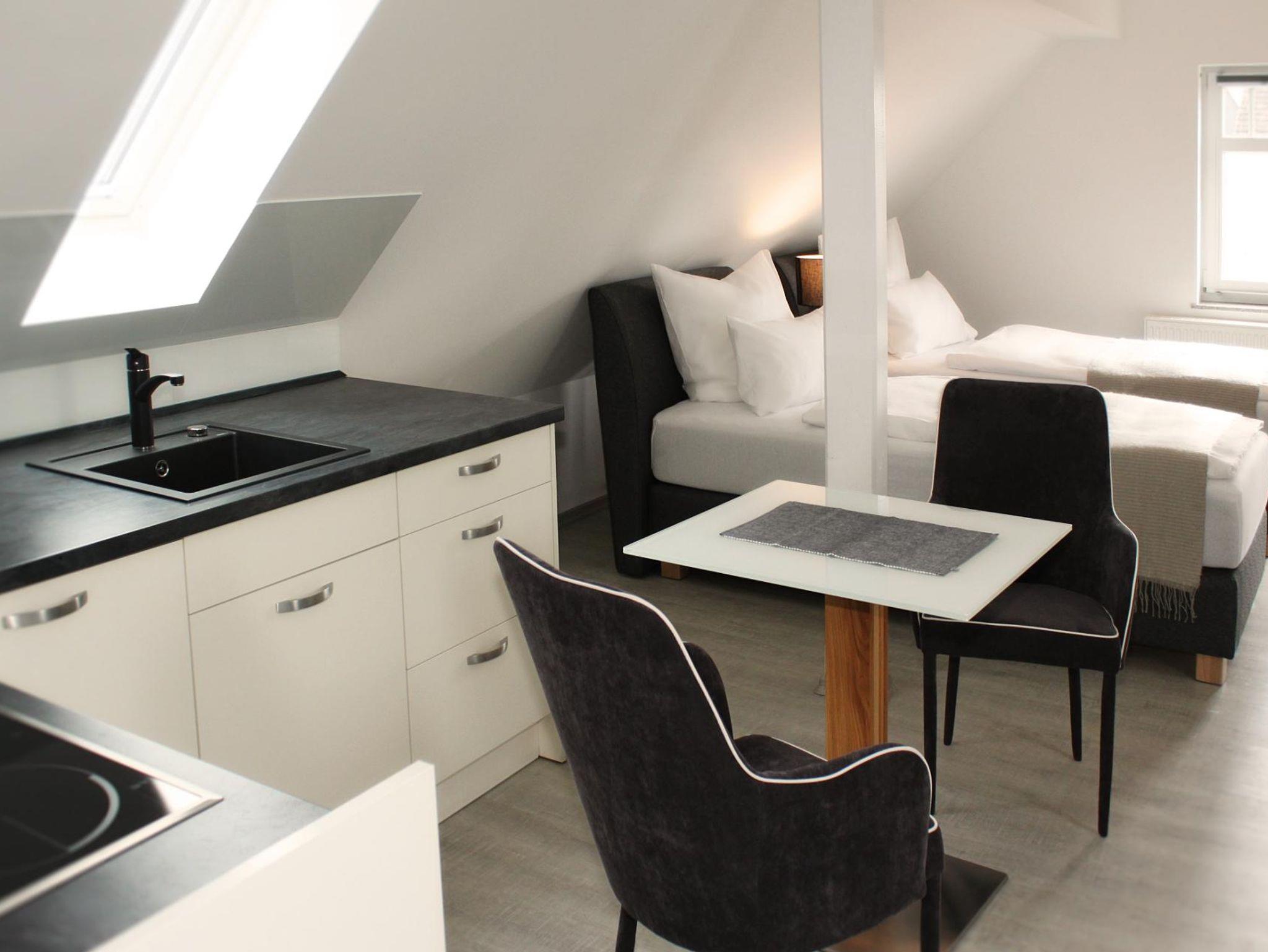 Das Apartment Rose (ca. 35 m²) befindet sich im Dachgeschoss und bietet Platz für zwei Personen.