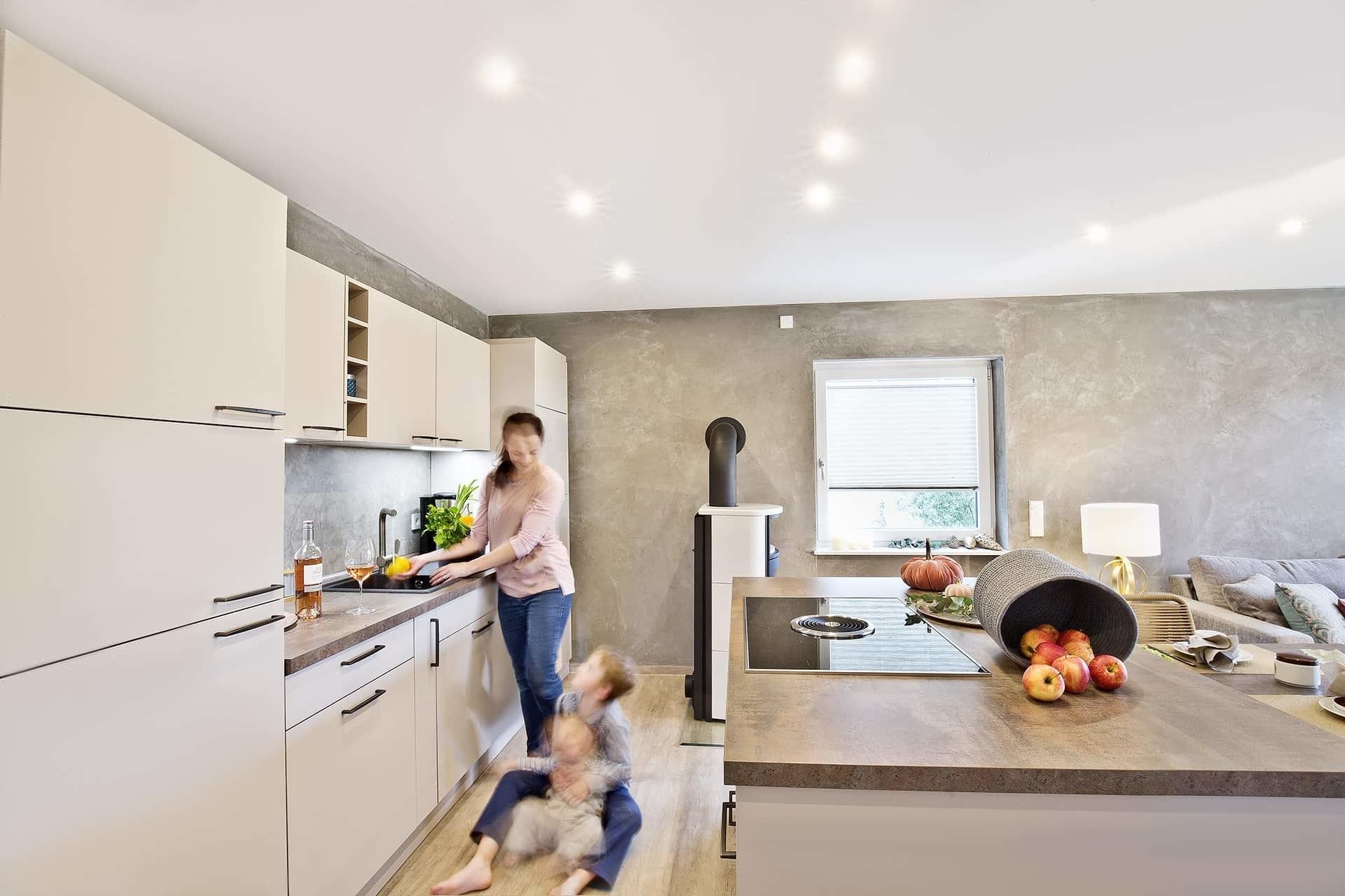 - Das Herz der Wohnung ist der offene Wohn- und Küchenbereich, der sehr kommunikativ ausgerichtet ist mit dem Essplatz mitten im Raum an der Kochinsel. Die hochwertige, voll ausgestattete Küche bietet alles, was Sie benötigen, auch für einen längeren Aufenthalt.
