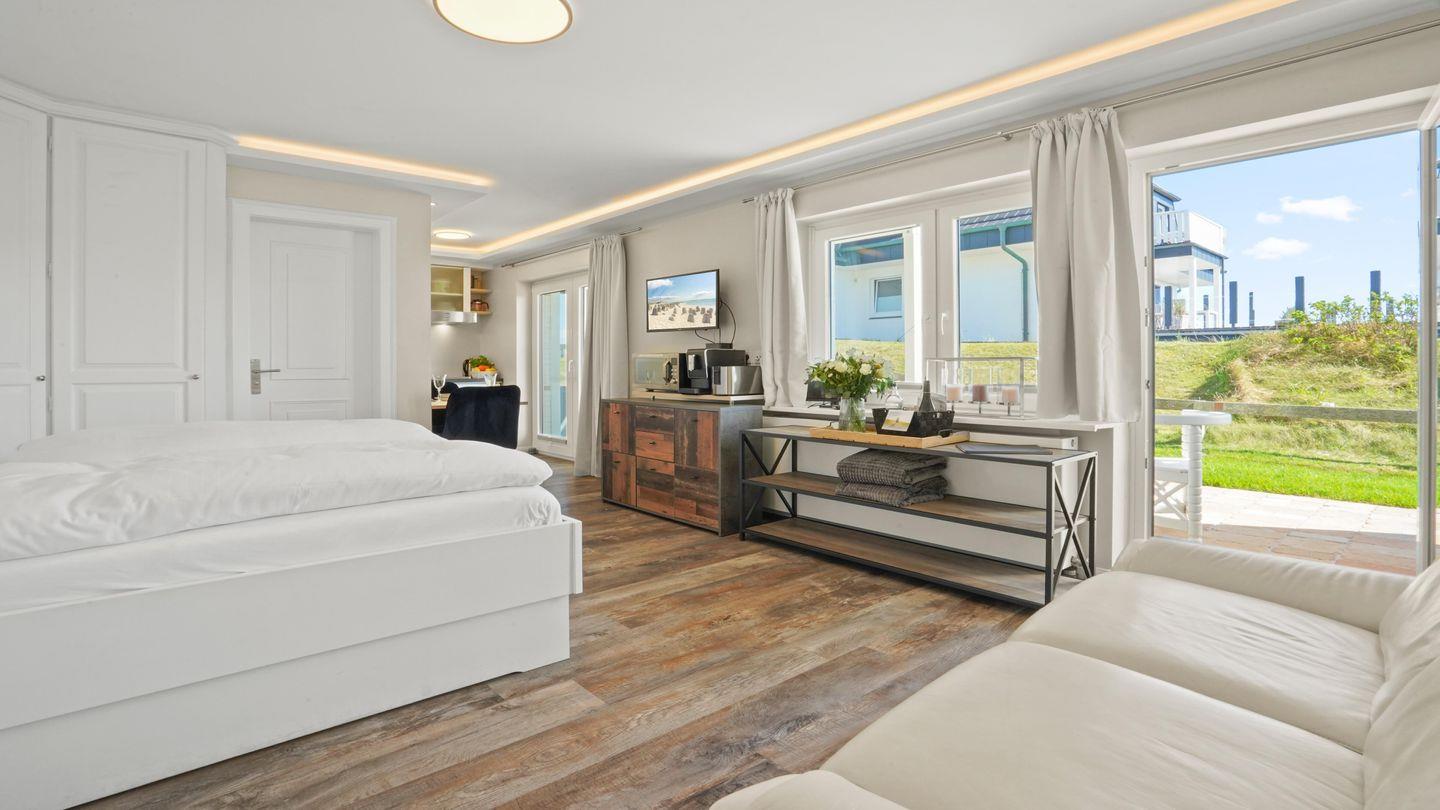 sich diese charmante 1-Zimmer-Suite mit offen abgetrennter Pantryküche, Die Dünen-Suite ruft