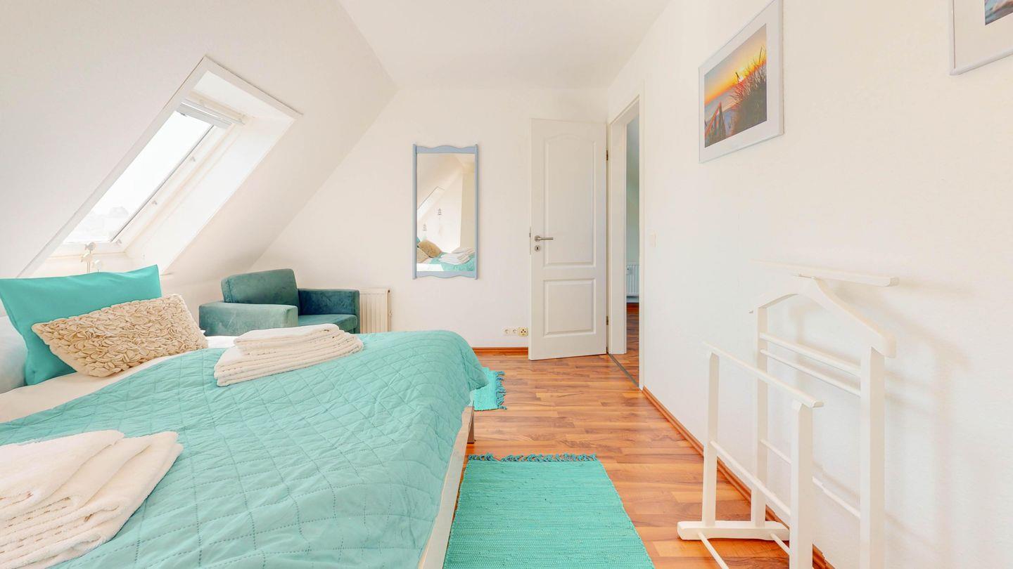 Schlafzimmer: Ein gemütliches Doppelbett für erholsame Nächte.
