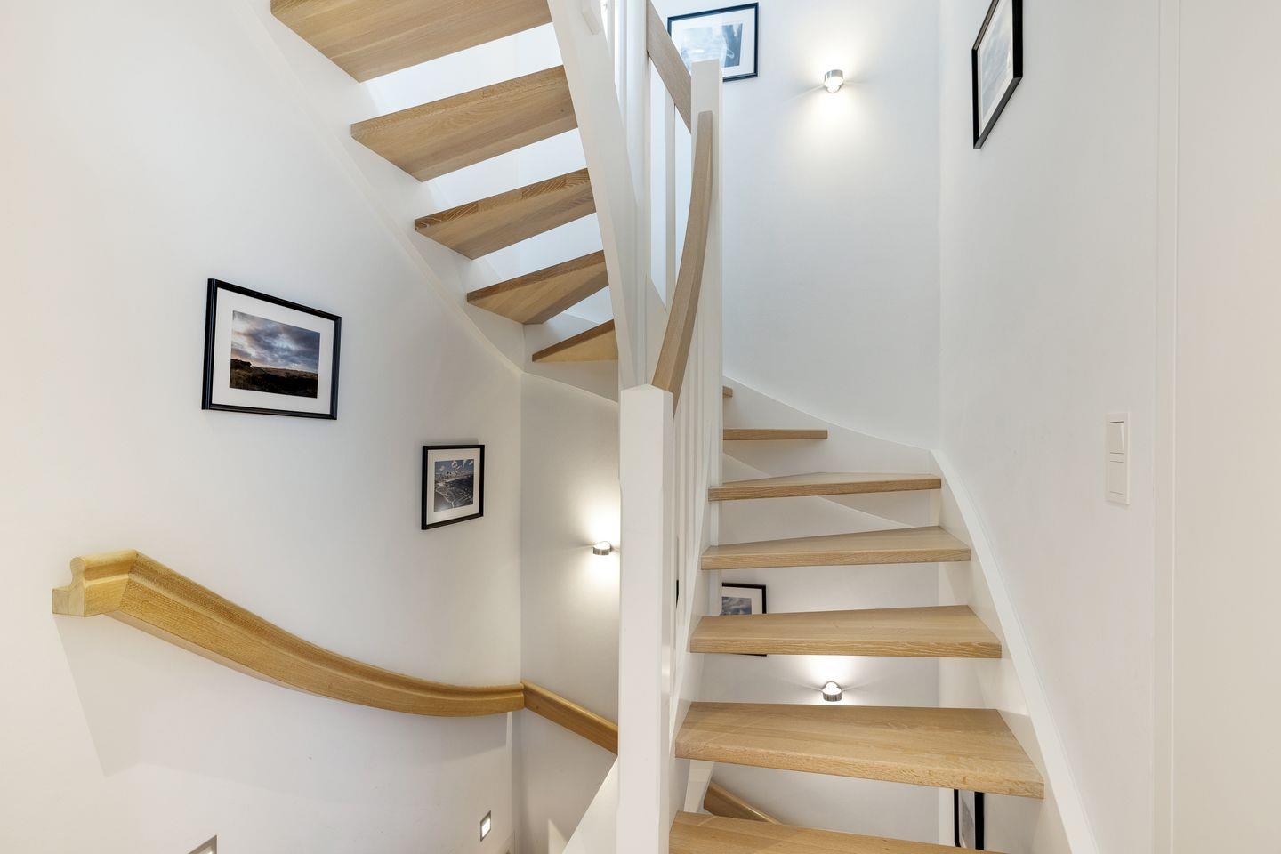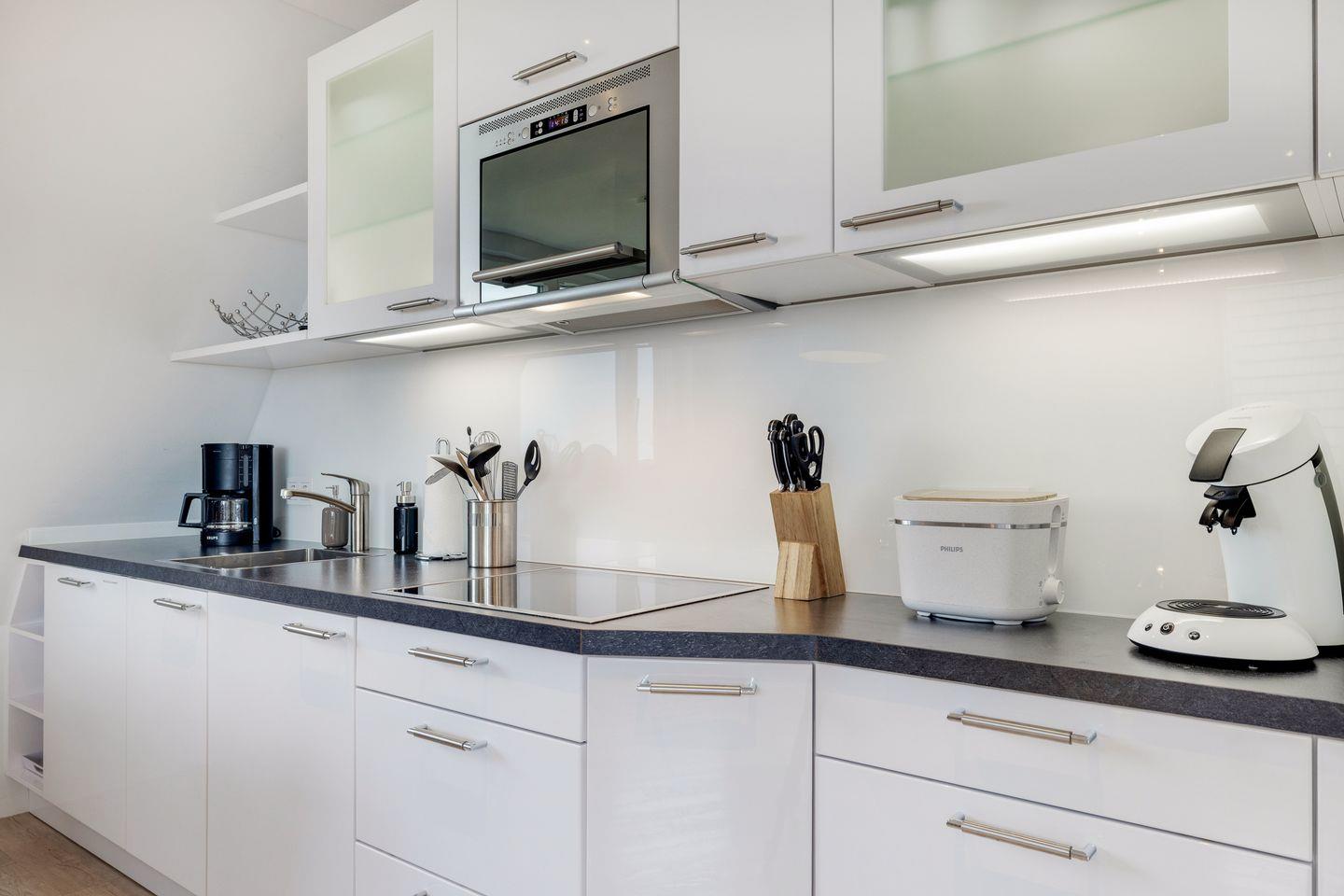 OG: Schlafzimmer mit zwei getrennt stehenden Betten (2x 90 x 200 cm), Küchenzeile mit Spülmaschine, komb. Mikrowelle/Grill, Kaffeemaschine, Senseo-Padmaschine, Eierkocher, Mixer, Wasserkocher, Toaster, Wohnbereich mit DigitRadio [&] Spotify Connect, DVD Player, Flatscreen-TV, Bügeleisen, Wäscheständer, Tresor, Gaskamin, Dusche /WC, Balkon mit Möbeln.