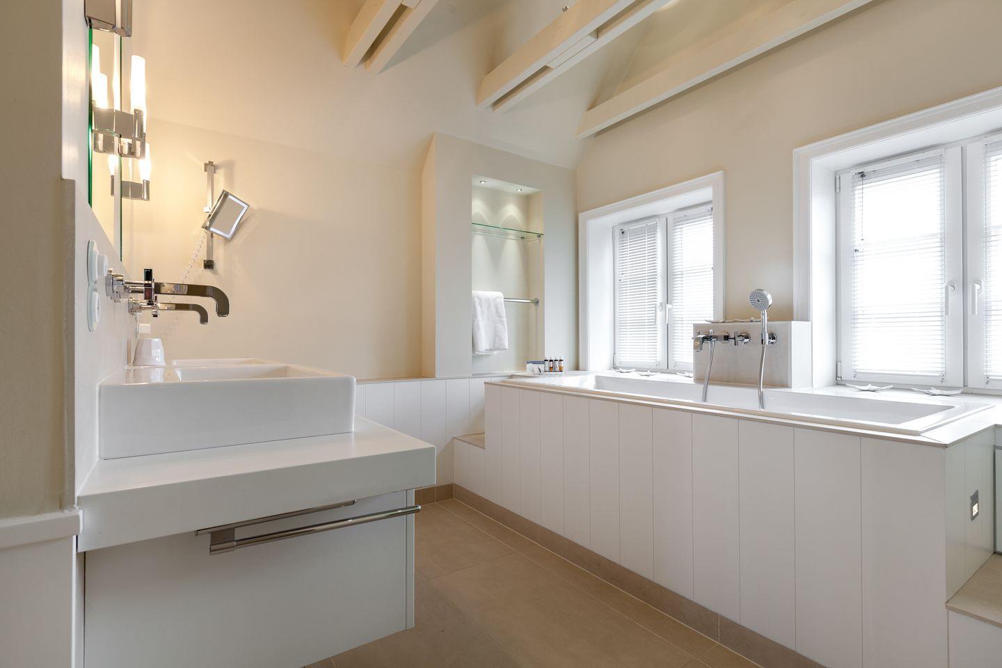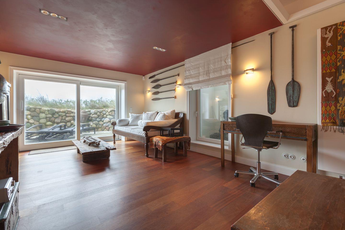 Zum Bücherlesen ebenso perfekt, wie zum Tagträumen oder Siestahalten. Freunde des guten Geschmacks meinen, an dieser Stelle Ihrer Villa einen nahezu kontemplativen Ort zum Genießen Feinperligens oder bordelaiser Provenienzen gefunden zu haben. Oder Sie greifen sich einfach eines der drappierten Ferngläser (natürlich antik!) und halten Ausschau nach Schweinswalen, die immer wieder gern vor Ihren Augen auftauchen. Oder schauen ein wenig nach links, und erblicken bei guter Sicht Amrum, ein schlichtweg atemberaubendes Fernpanorama. Oder einfach mal nichts tun. 'Und mit sich und der Welt eins sein', wie ein Gast uns schilderte. Oder machen Sie doch aus dem 'Oder' ein 'Sowohl-Als-Auch' – an diesem Ocean-View-Spot scheint (fast) alles möglich.[nbsp][nbsp]