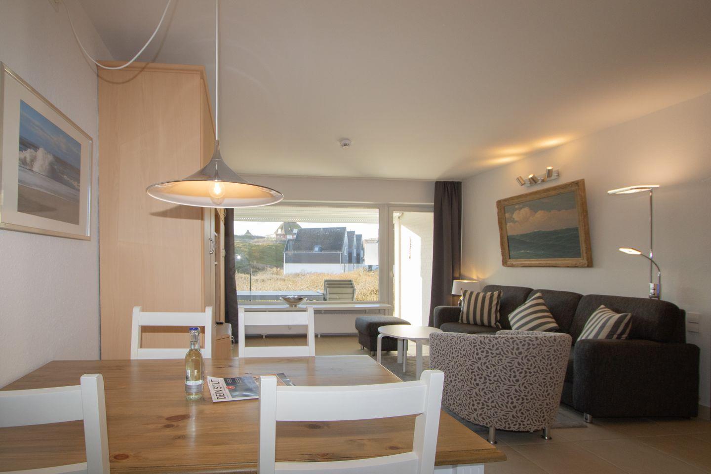 Die Appartementanlage liegt in der Dünen- und Heidelandschaft Hörnums in ruhiger Lage mit direktem Weg zum Hauptbadestrand vor der Tür. Es sind Gartenmöbel und Liegen, sowie ein Sonnenschirm vorhanden. Diese Wohnung wird als Nichtraucherwohnung angeboten und auf der Terrasse darf nicht gegrillt werden. Haustiere sind in dieser Wohnung nicht erlaubt. Der Pkw-Stellplatz befindet sich in unmittelbarer Nähe des Hauses.