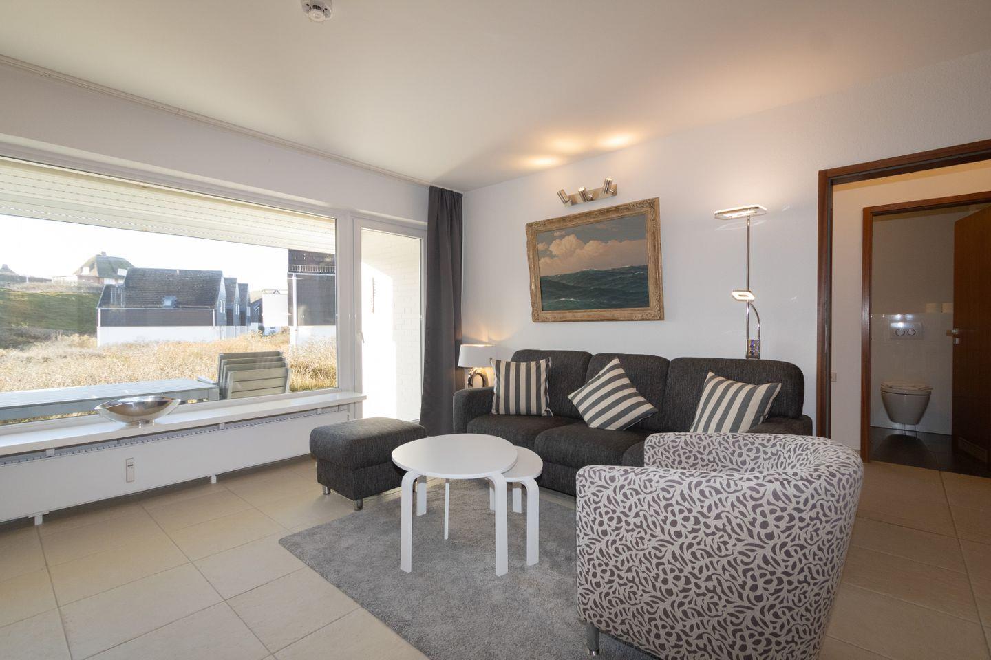 Helle Erdgeschosswohnung in Hörnum mit Terrasse und direktem Zugang zum Hauptbadestrand, ideal für Familien und Strandliebhaber.