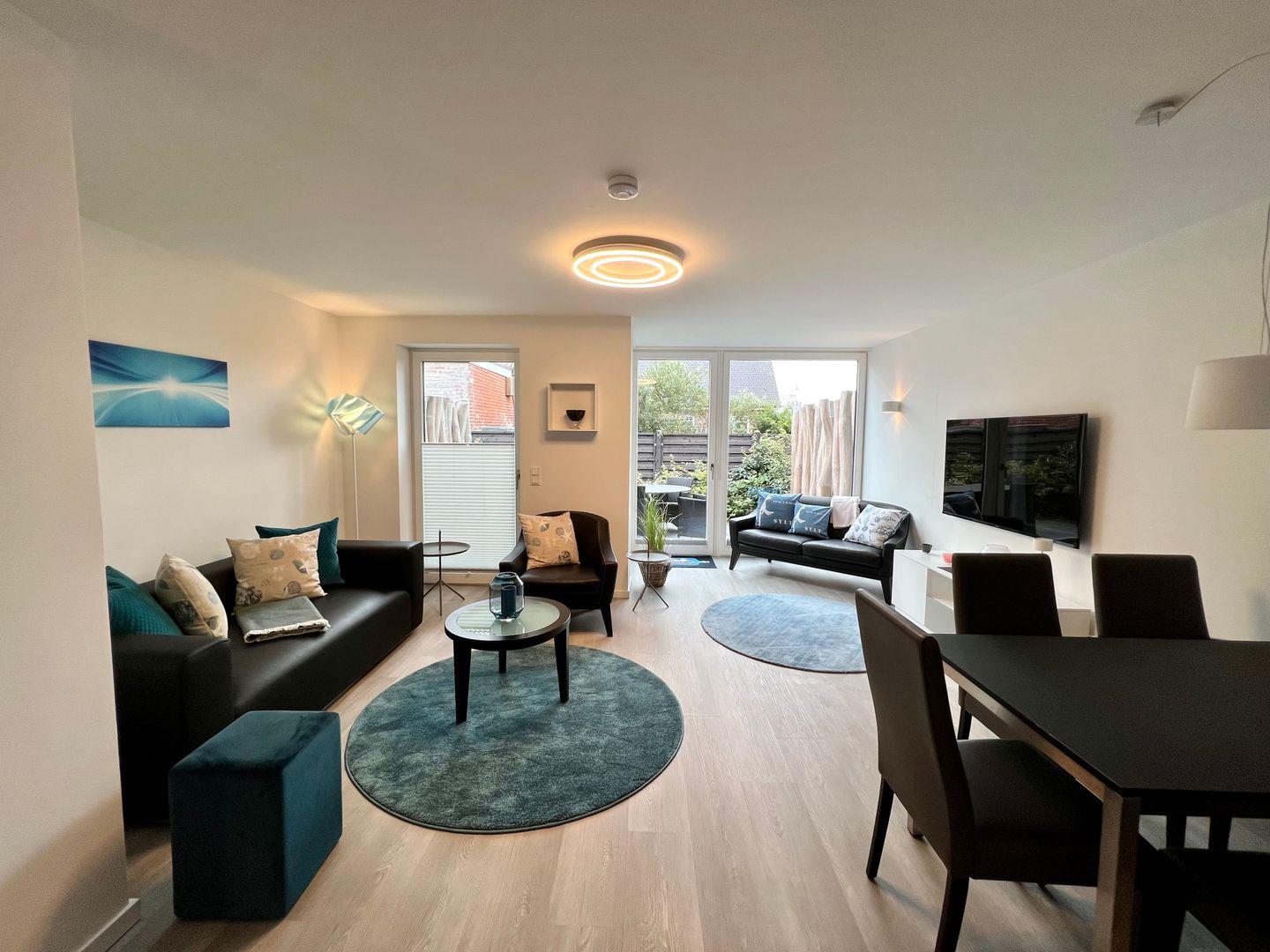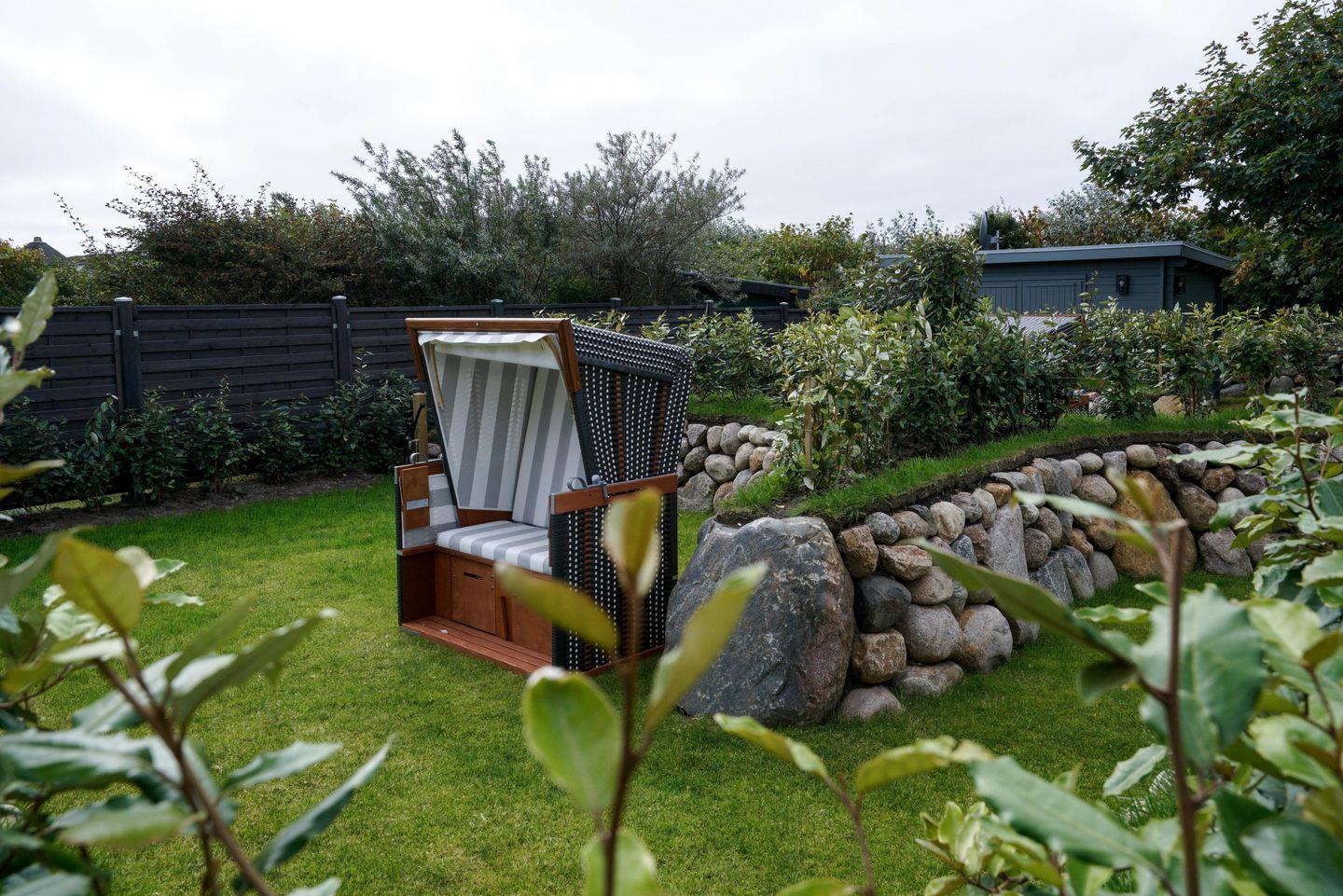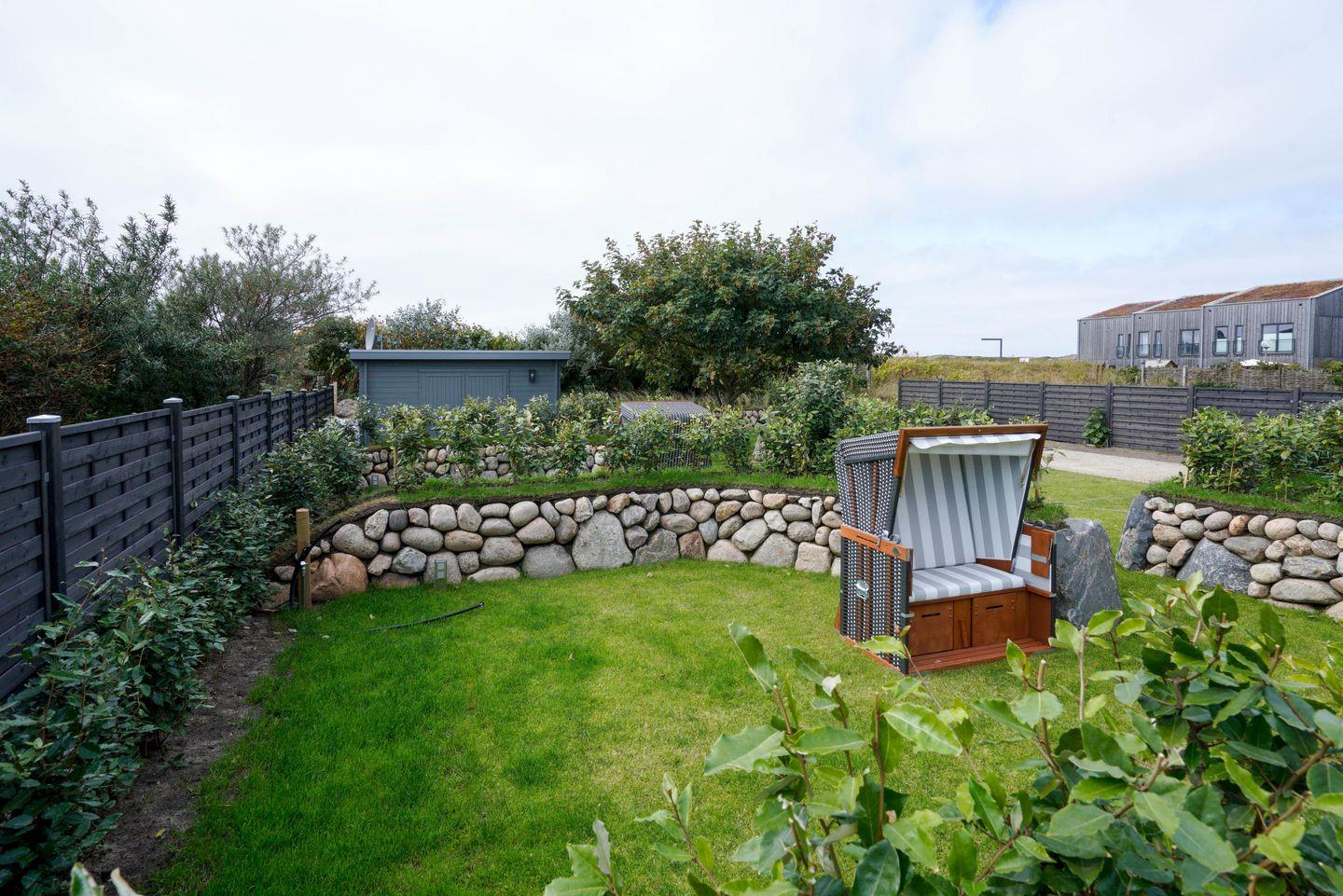 Gemütliches Ferienhausteil in Hörnum mit privatem Garten, Sauna und E-Ladestation für erholsame Urlaubstage.