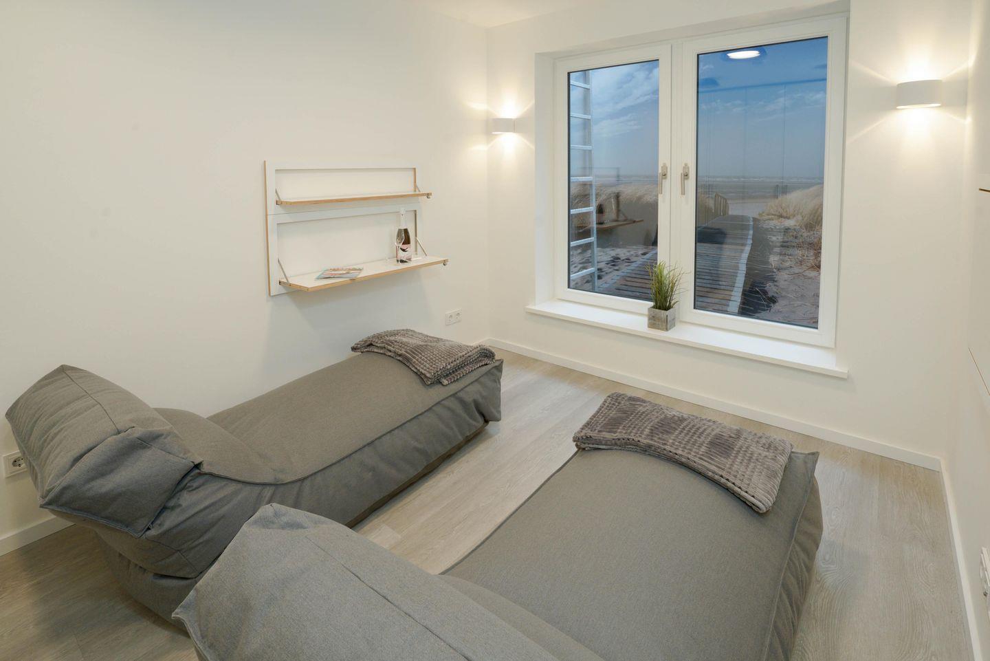 Das Ferienhausteil liegt in einer ruhigen Gegend im Steintal in Hörnum. Vom Wohnzimmer gibt es einen direkten Zugang zum eigenen Gartenanteil wo von Ostern bis Herbst ein Strandkorb sowie Gartenmobiliar zur Verfügung steht. Die beiden Schlafzimmer im Obergeschoss stehen mit Flatscreen TV zur Verfügung. Im Untergeschoss befindet sich Ihre persönliche Wohlfühloase mit einer privaten Sauna und einem Ruheraum und einem großen Duschbad. Zum Appartement gehört ein Pkw-Stellplatz mit einer eigenen E-Lade Station. Eine Wallbox steht Ihnen gegen eine Gebühr von 50 Euro zur Verfügung.