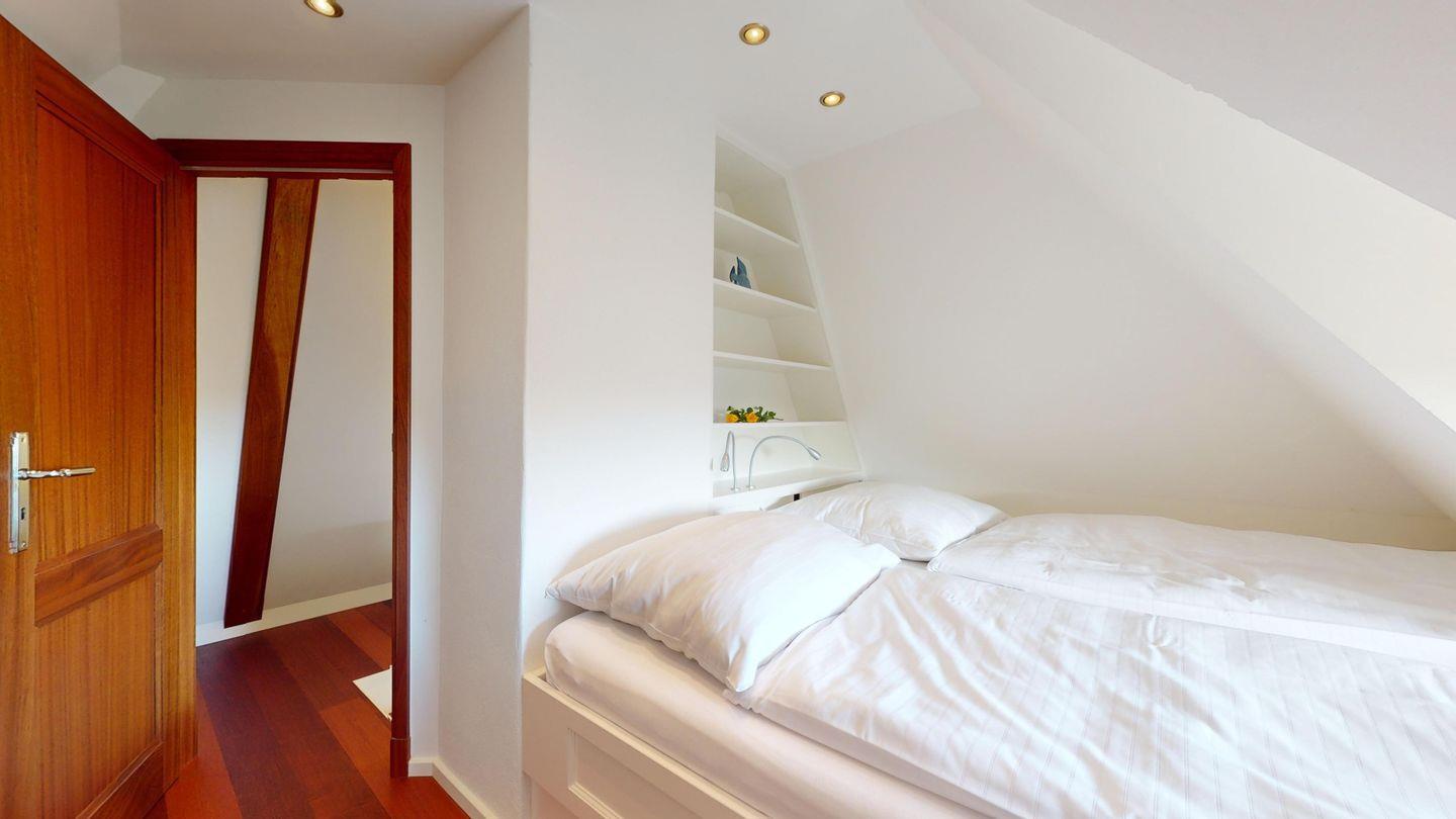 Das Schlafzimmer befindet sich in der 2 Etage und ist über eine großzügige Treppe zu erreichen. Vom Schlafzimmer aus haben Sie einen traumhaften Blick über die Dünenlandschaft. Das Badezimmer befindet sich parterre und verfügt über eine ebenerdige Dusche.