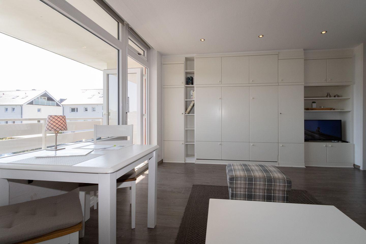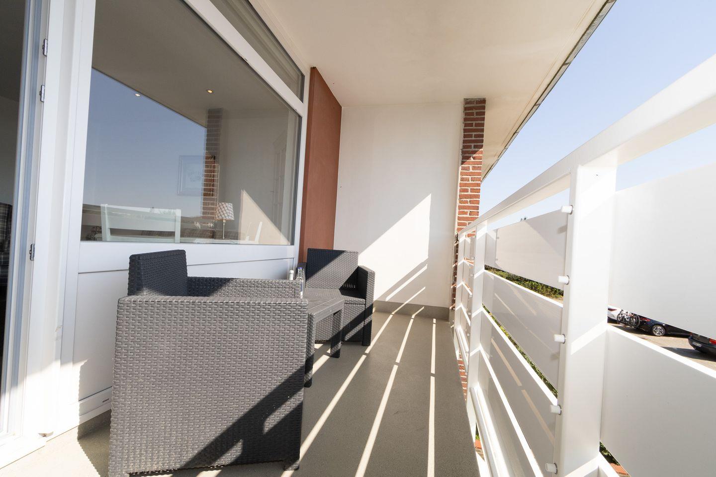 Besonders hervorzuheben ist der eigene große Balkon, auf dem Sie die frische Nordseeluft genießen und die Umgebungskulisse bewundern können. Genauso zum Frühstücken ein idealer Ort.