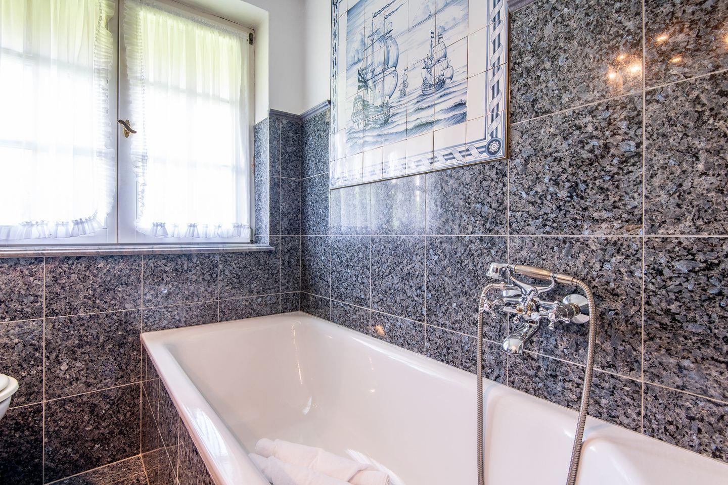 Zwei Badezimmer garantieren einen bequemen Aufenthalt für alle Gäste. Das erste Badezimmer bietet eine einladende Badewanne, perfekt für entspannende Momente, und das zweite Badezimmer ist mit einer Dusche und WC ausgestattet.